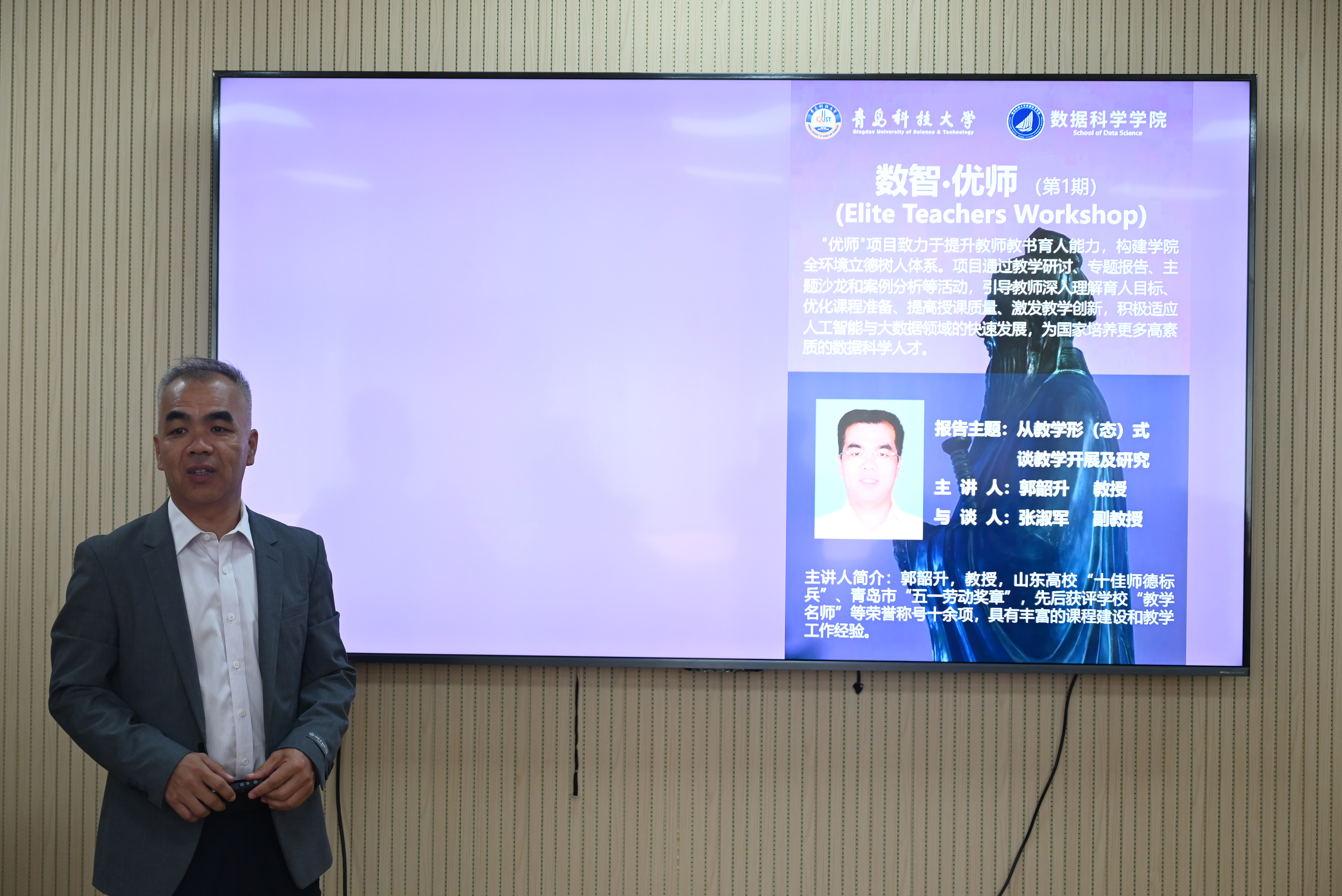 郭韶升以《从教学形(态)式谈教学开展及研究》为题,重点从“教学建设形态、如何开展教学、教学成果”三个方面,向与会教师详细介绍了当前教学建设所面临的机遇和挑战,郭韶升强调教学建设应融合课程思政、数字化资源与创新理念,以此作为提升教学效果和质量、促进专业人才培养的有效抓手。他围绕自身多年来的教学感悟,鼓励教师们要做到勤学习、善积累、长反思、抓机遇、靓成果,积极探索新时代教育教学方法,不断提升教书育人本领。
