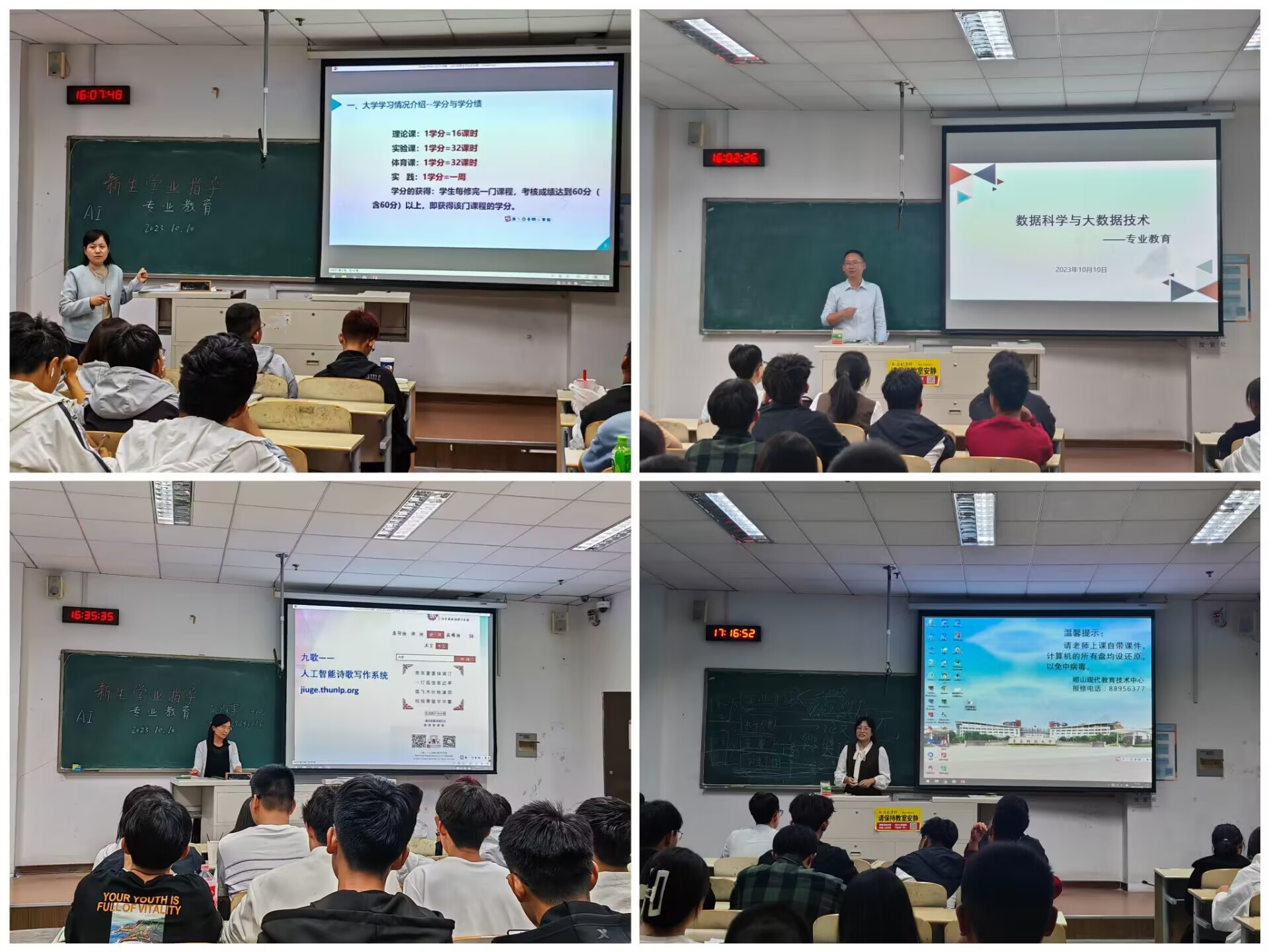 接着,教学秘书张倩老师向同学们介绍了大学四年修学分、补考、重修、转专业、学业预警等方面的相关政策要求制度,讲解了课程体系以及选课的基本流程。青年教师高颖老师向同学们讲述了学分与绩点的重要性,并着重强调了考试作弊问题。最后,由2020级数据科学与大数据技术专业宫传政同学讲述自己的大学生活并给出建议,为同学们指点迷津,帮助同学们树立正确的学习及生活目标。