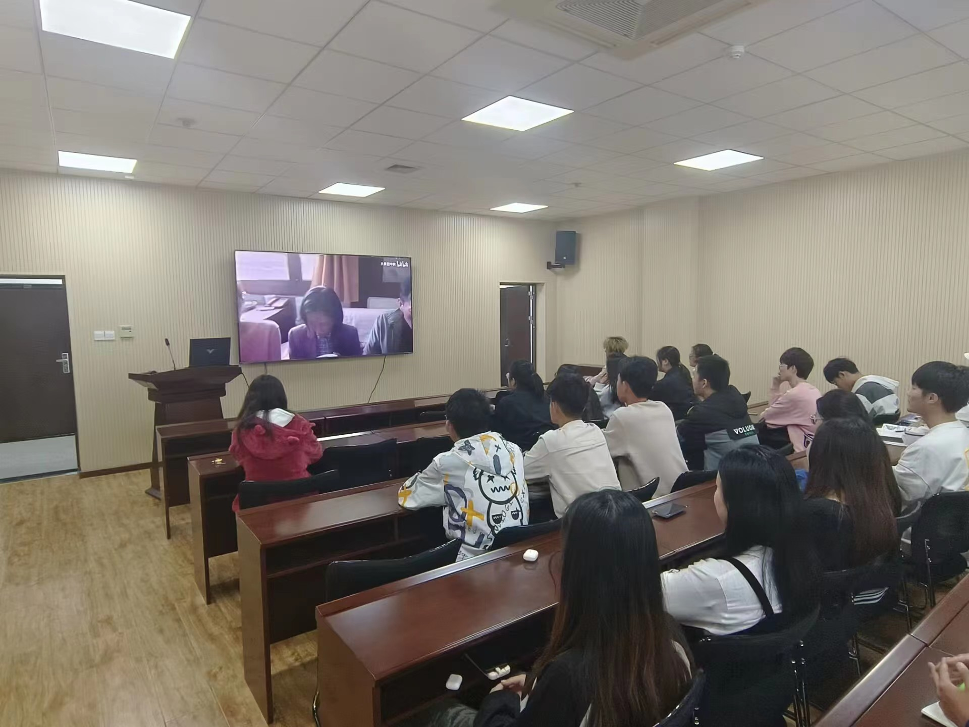团课的最后,同学们一起观看共青团中央微电影《重逢》,该影片以我国加勒万河谷冲突事件中牺牲的战士肖思远为原型创作,讲述一位烈士奶奶代替孙儿千里迢迢看望其女友的故事。观影结束,同学们纷纷表示,真切感受到了全片的主旨:中国的年轻人从来不缺血性,“在奋斗的征途上,每一个青春都能重逢”。
