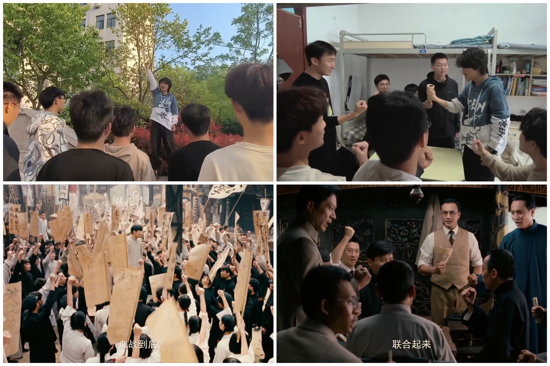 岁月流转,精神永存。bat365中文官方网站充分调研当下学生喜闻乐见的活动方式,举办“青春回响·‘五四’精神站位复刻活动”。数科学子通过跨越时空的转场手法,录制转场视频,复刻中国近代史名场面、红色影视作品经典镜头,将历史画面与现代相结合,实现了穿越时空的对话。用镜头记录历史,用情感连接现代与未来,表达了数科学子对祖国的热爱,发出属于当代青年人的独特声音。