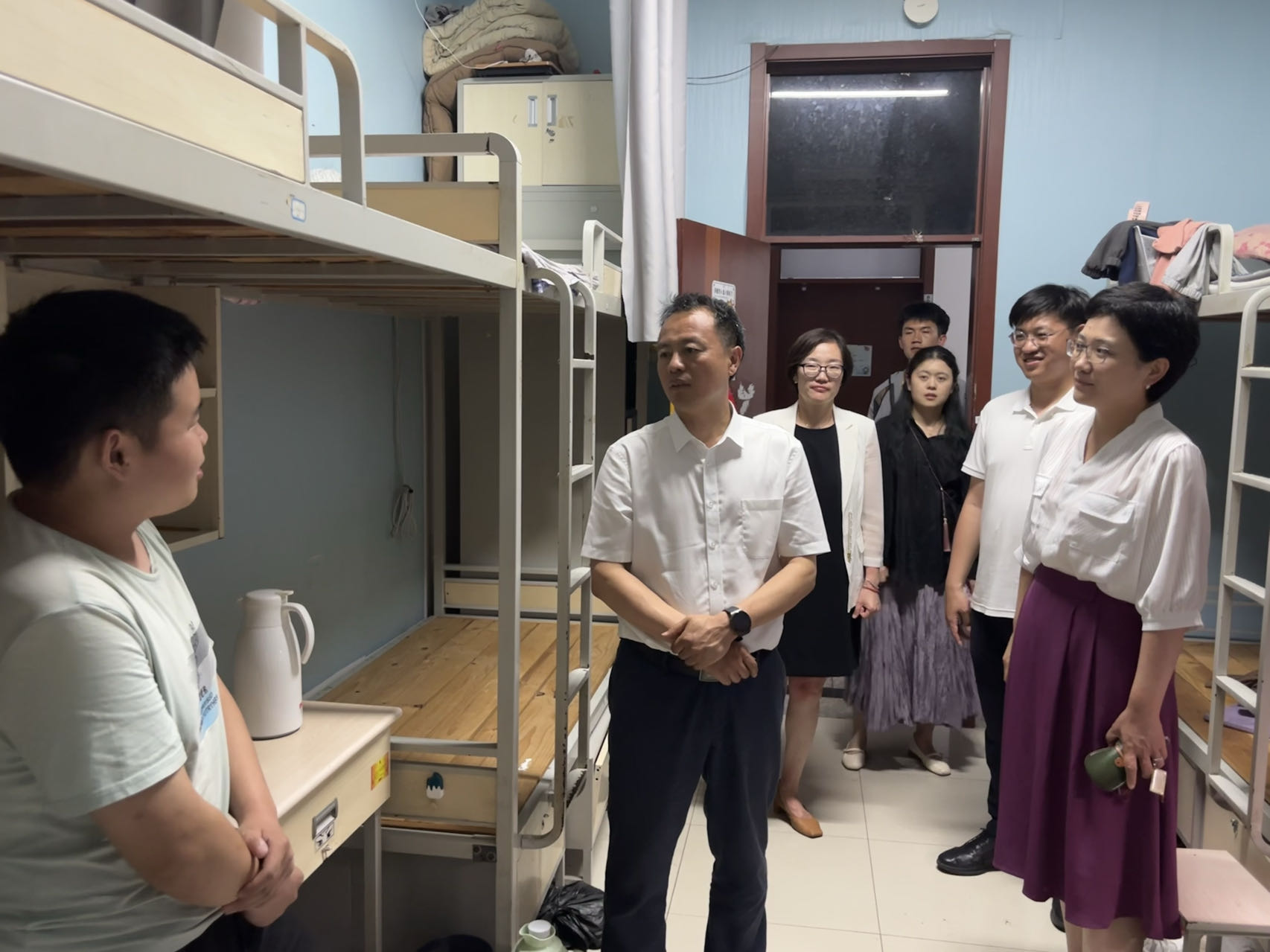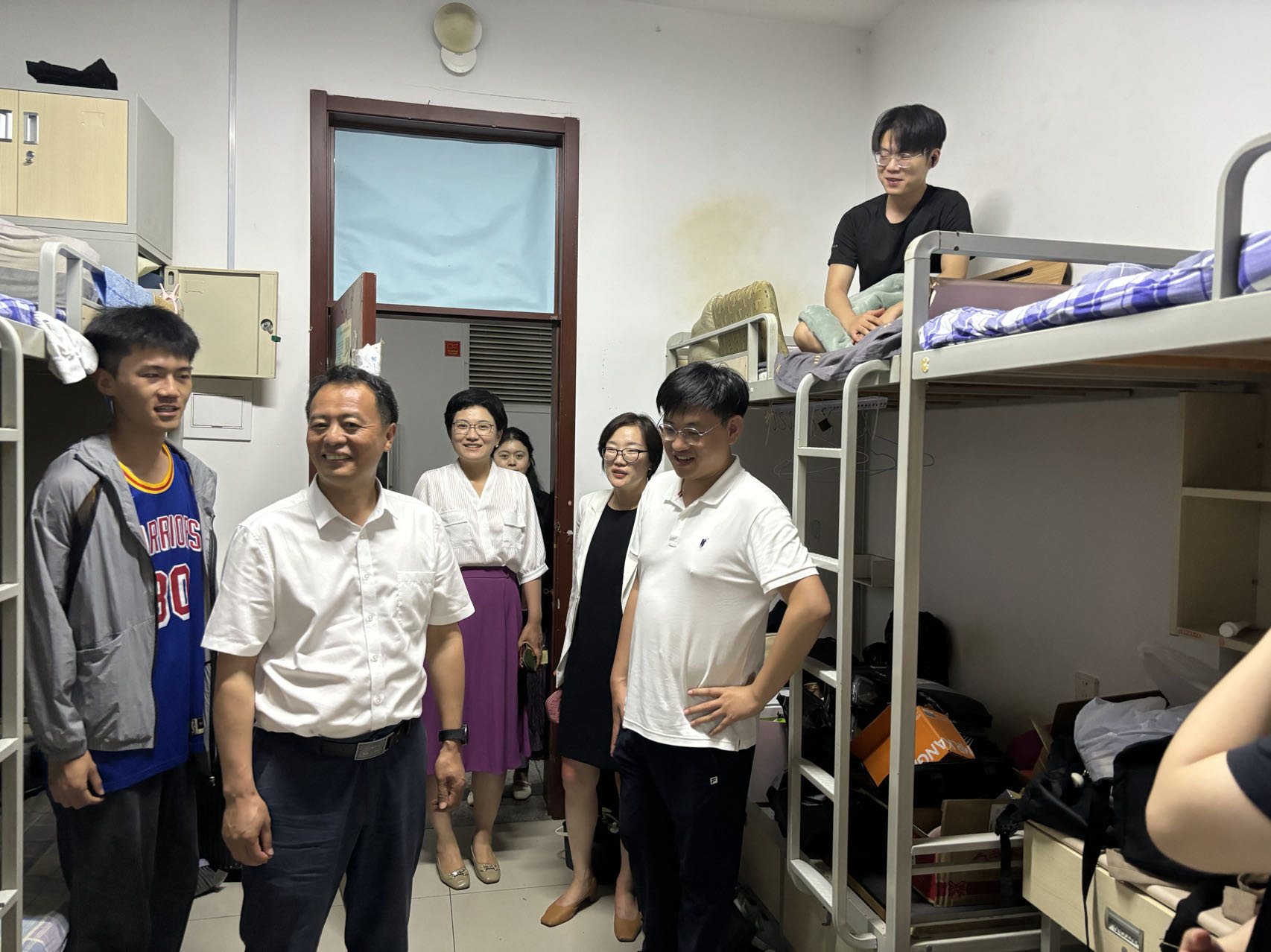 为深入了解毕业生的思想动态和就业情况,帮助毕业生解决实际困难,保障毕业生安全文明离校。6月21日晚上,bat365中文官方网站党总支书记张玉,常务副院长杜军威,党总支副书记兼副院长、毕业班辅导员顾姗姗,团委副书记兼学工办副主任姜国华,辅导员卞文馨共同走访毕业生宿舍,与毕业生展开亲切交流,传递学院的深切关怀和美好祝愿。