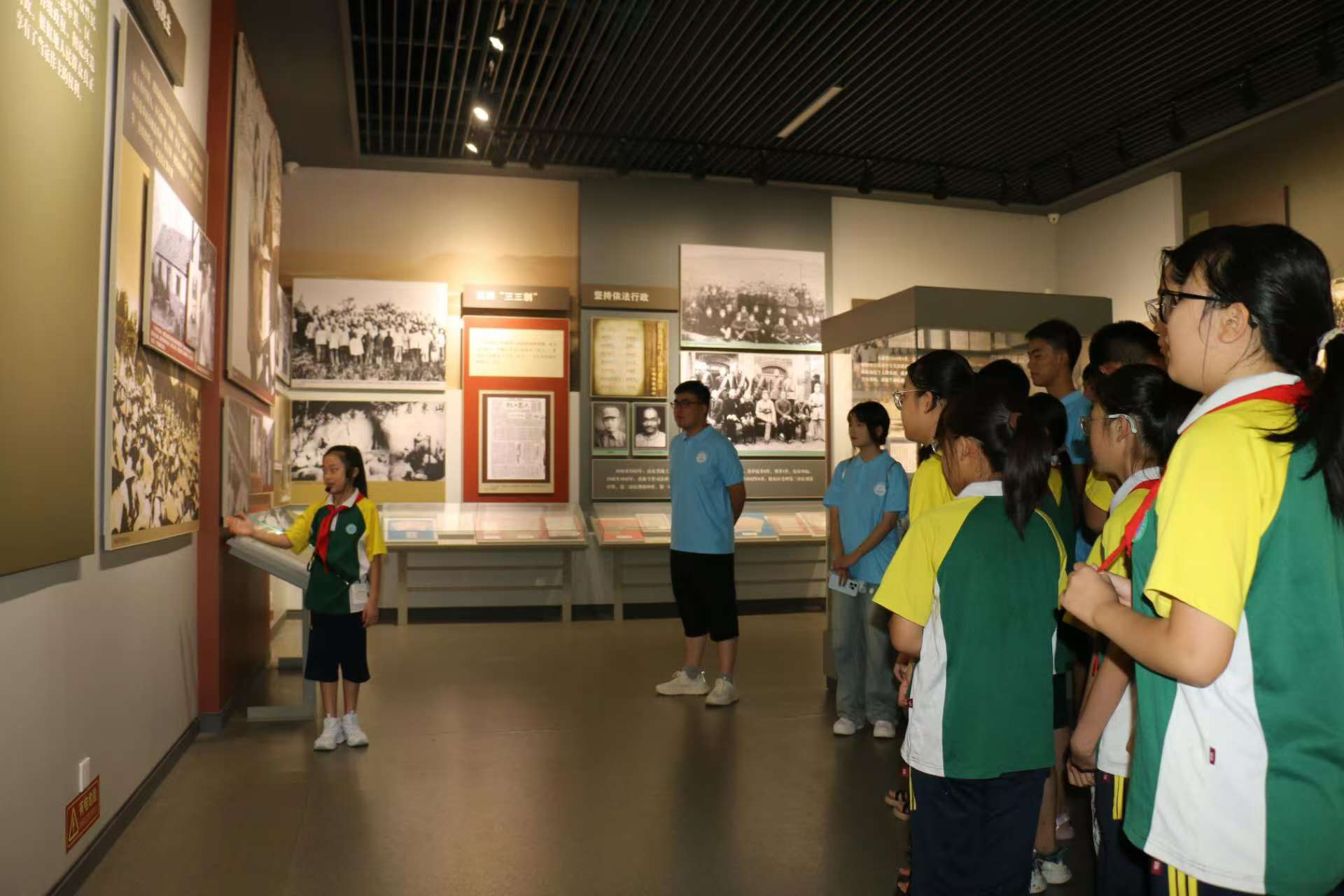 7月28日一早,宣讲团成员就带领大店镇中心小学的少先队员们走进了山东省政府旧址,仔细感受那段艰苦抗战的历史。大学生和小学生一起,共同追忆峥嵘岁月,追寻沂蒙大地上的革命足迹。一幅幅照片、一件件展品、一个个英雄人物、一段段革命事迹,让少先队员们在感受战争气息、体味血浓于水的同时,更加坚定了爱国主义信念,讲到动情处,禁不住热泪盈眶。