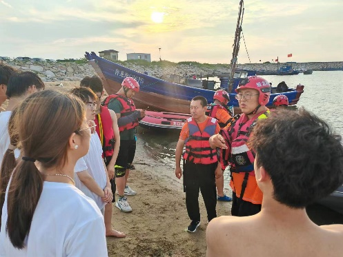 2024年8月10日下午,在夏日的热情召唤下,bat365中文官方网站“青年担大任”基层振兴志愿服务团的青年志愿者们踏上了前往烟台市龙口市的旅程,他们此行的目的地是风景如画的东海旅游度假区沙滩。志愿者们与当地知名的蛟龙救援队携手,共同开展了一场别开生面的防溺水安全知识宣传活动,以青春之名,守护大海的宁静与游客的安全。