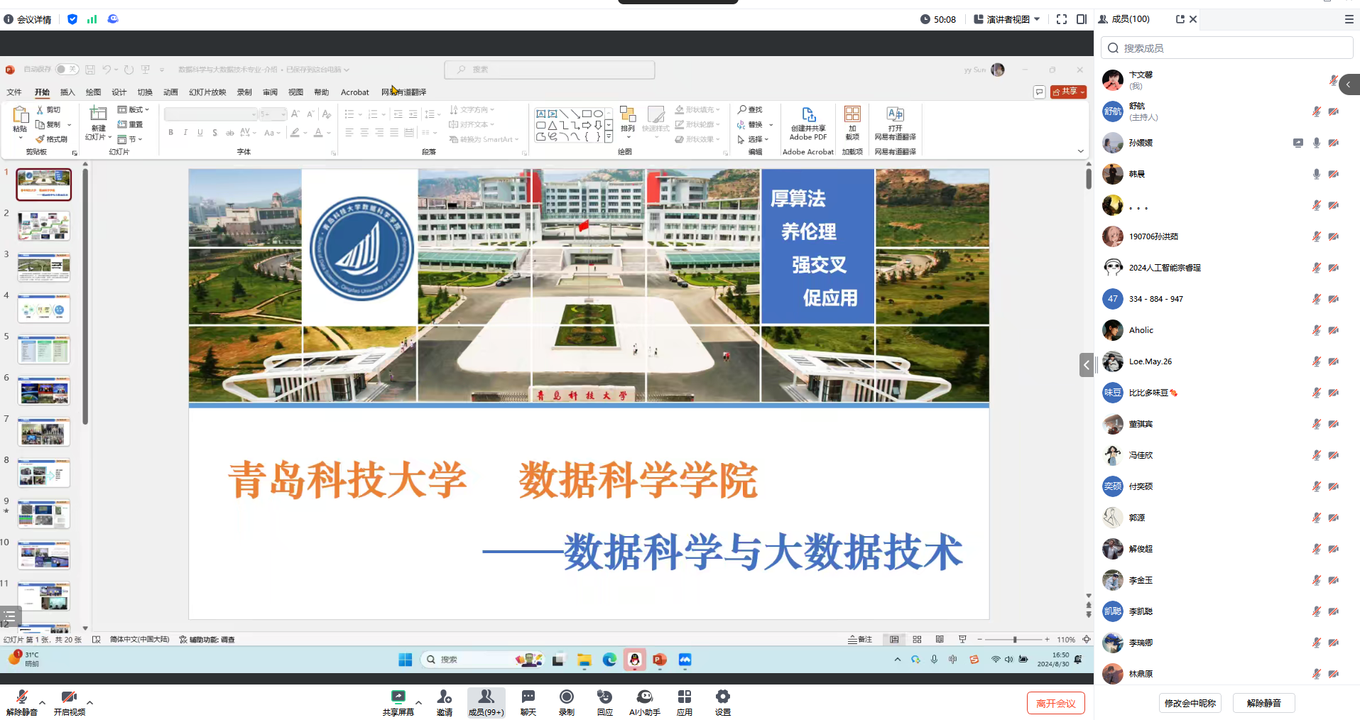 见面会上,新生辅导员姜国华老师对新生表示了热烈的欢迎,从励同学们明确目标,以积极向上的态度去迎接即将到来的大学生活。接着,他从报到前的准备、报到当天以及报到后的安排三个方面介绍了新生入学注意事项,并对近期新生所关注的问题进行了系统和全面的解答。人工智能专业负责人刘金环老师、数据科学与大数据技术专业负责人孙媛媛老师从师资力量、学科与专业、教学科研资源、科学研究、代表性研究成果以及人才培养等方面介绍学院专业的基本概况,帮助新生增强对专业学习、科学研究及就业前景等方面的了解。