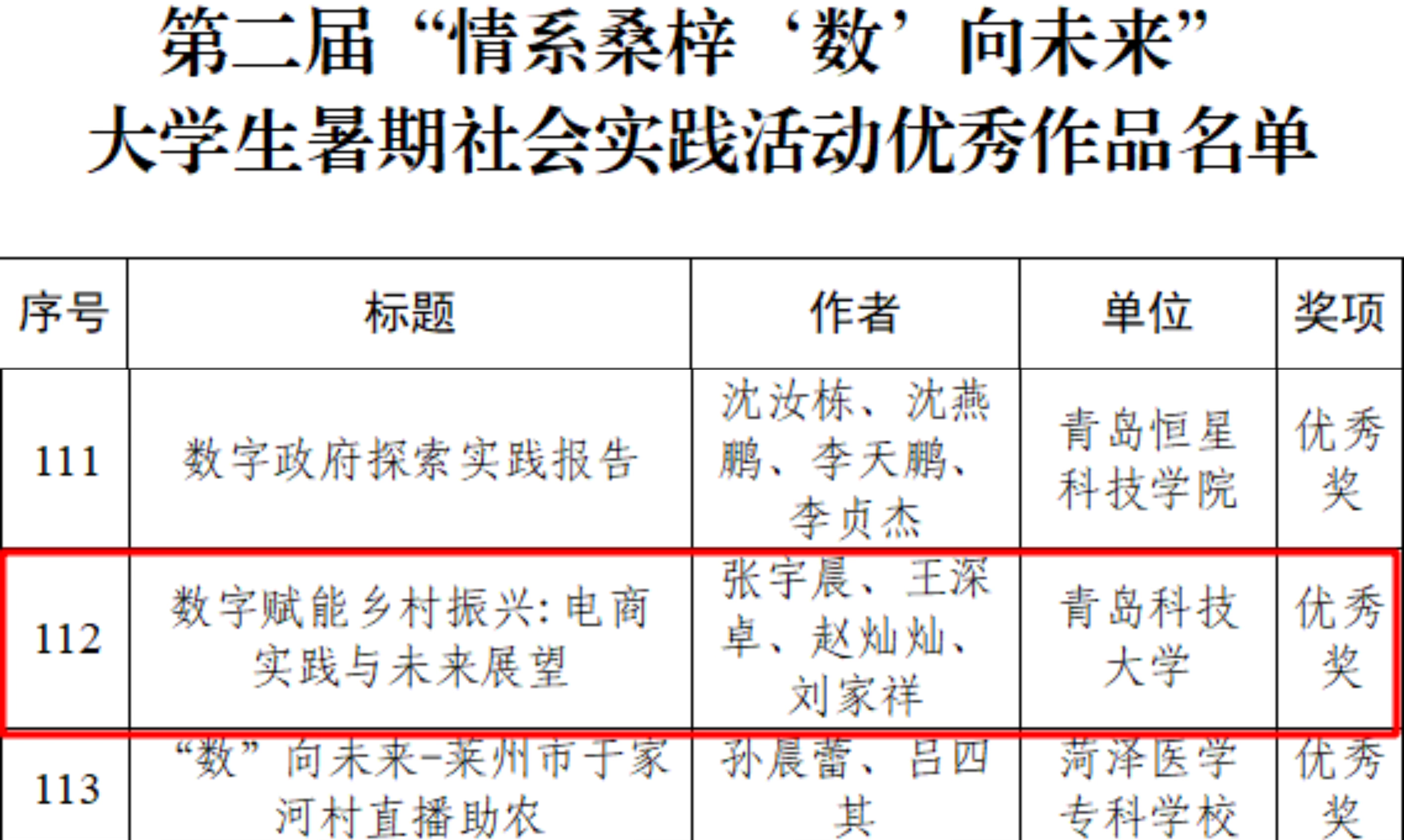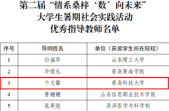 近日,由山东省大数据局、共青团山东省委、山东省教育厅联合举办的第二届“情系桑梓 ‘数’向未来”大学生暑期社会实践活动结果公布,我院荣获优秀指导教师一名,一等奖一项,优秀奖一项。