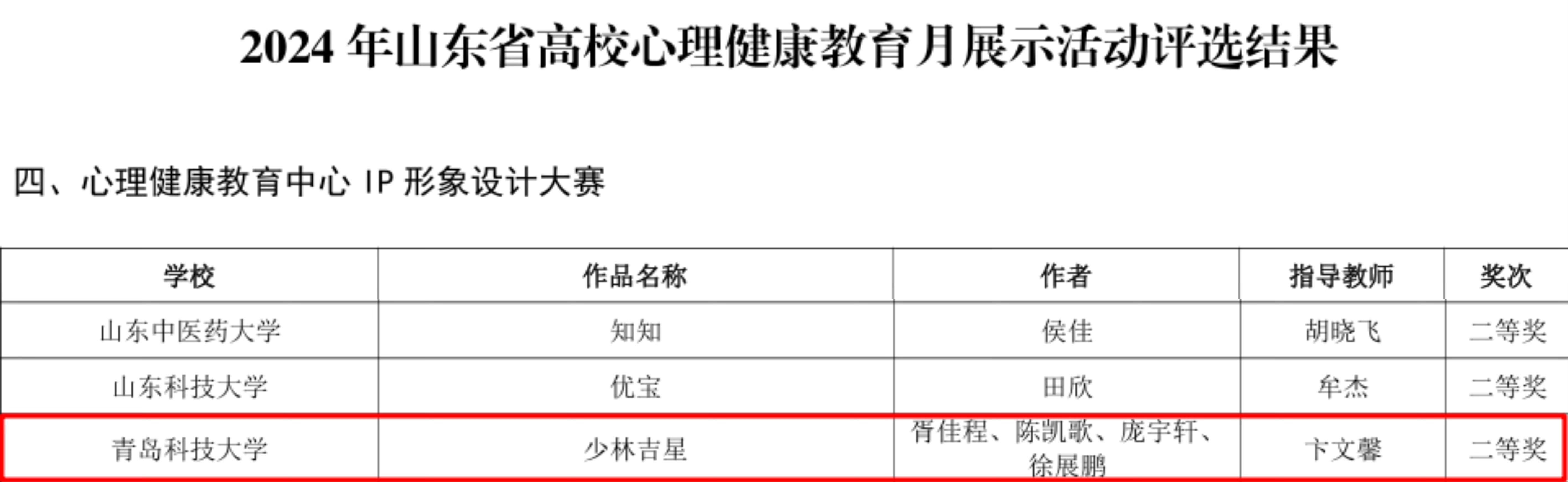 近日,山东省高等学校思想政治教育研究会、大学生心理健康教育专业委员会公布了2024年山东省高校心理健康教育月展示活动评选结果,bat365中文官方网站《少林吉星》获得心理健康教育中心IP形象设计大赛二等奖。