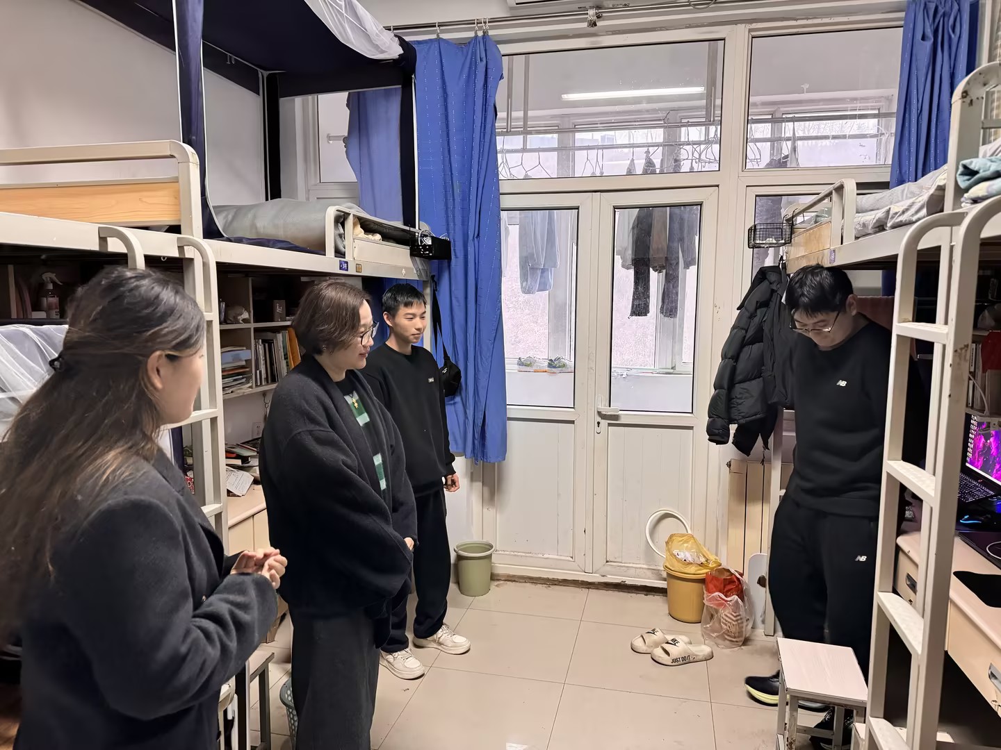 走访过程中,老师们了解了同学们的寒假生活、返校情况以及新学期的计划,解答了同学们在学业上和生活上的困惑,并对宿舍安全、卫生环境等进行了细致检查。针对不同年级学生的实际需求,辅导员们提出针对性建议。顾姗姗特别叮嘱同学们,新学期要调整状态,以饱满的热情投入学习生活。