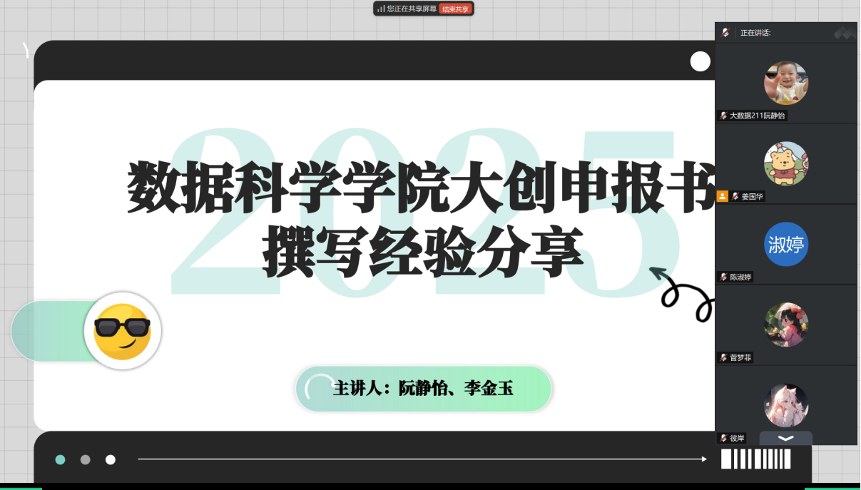为提升学生参与创新创业项目的能力,激发创新思维与实践热情,4月7日晚上,bat365中文官方网站成功举办“朋辈思享+”之大学生创新创业计划项目立项立项书撰写经验分享会。本次课程由2024年大创国家级立项负责人、大数据211班学生阮静怡担任主讲人,吸引了众多学生参与。