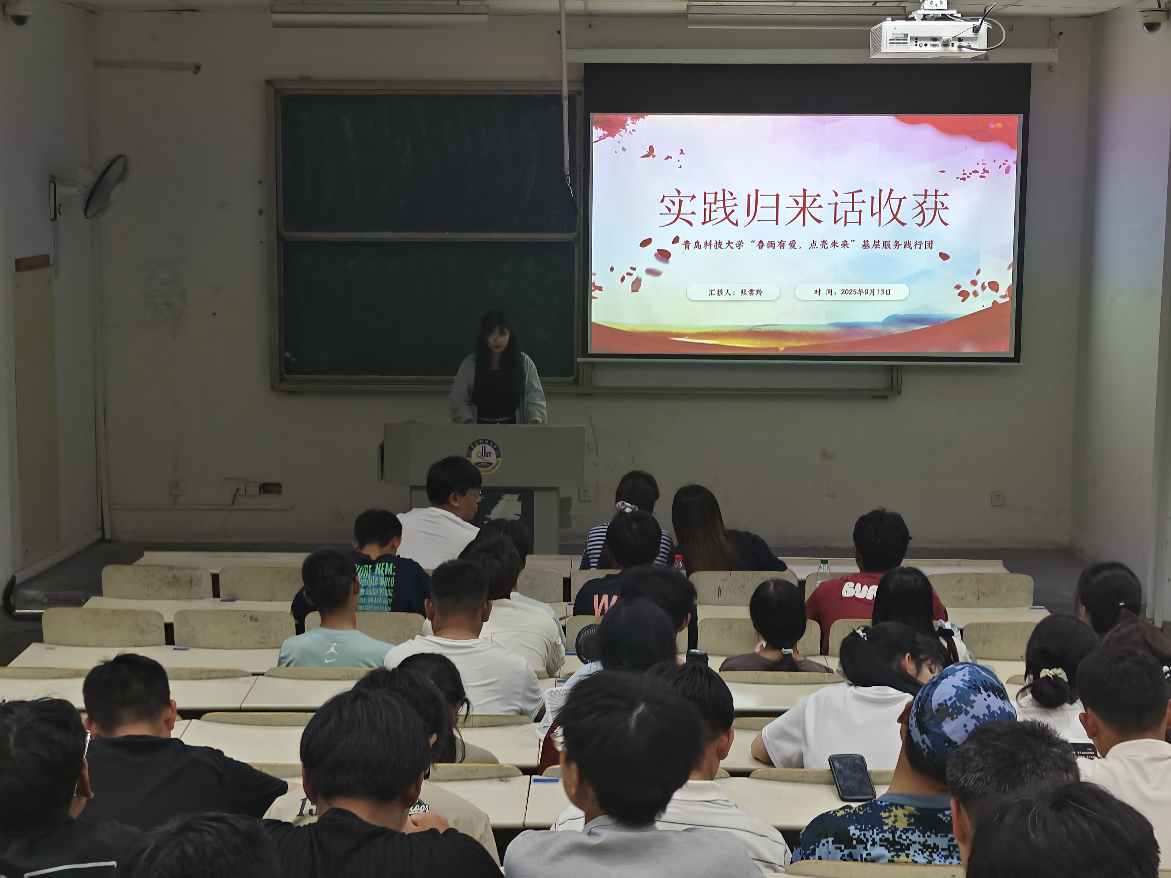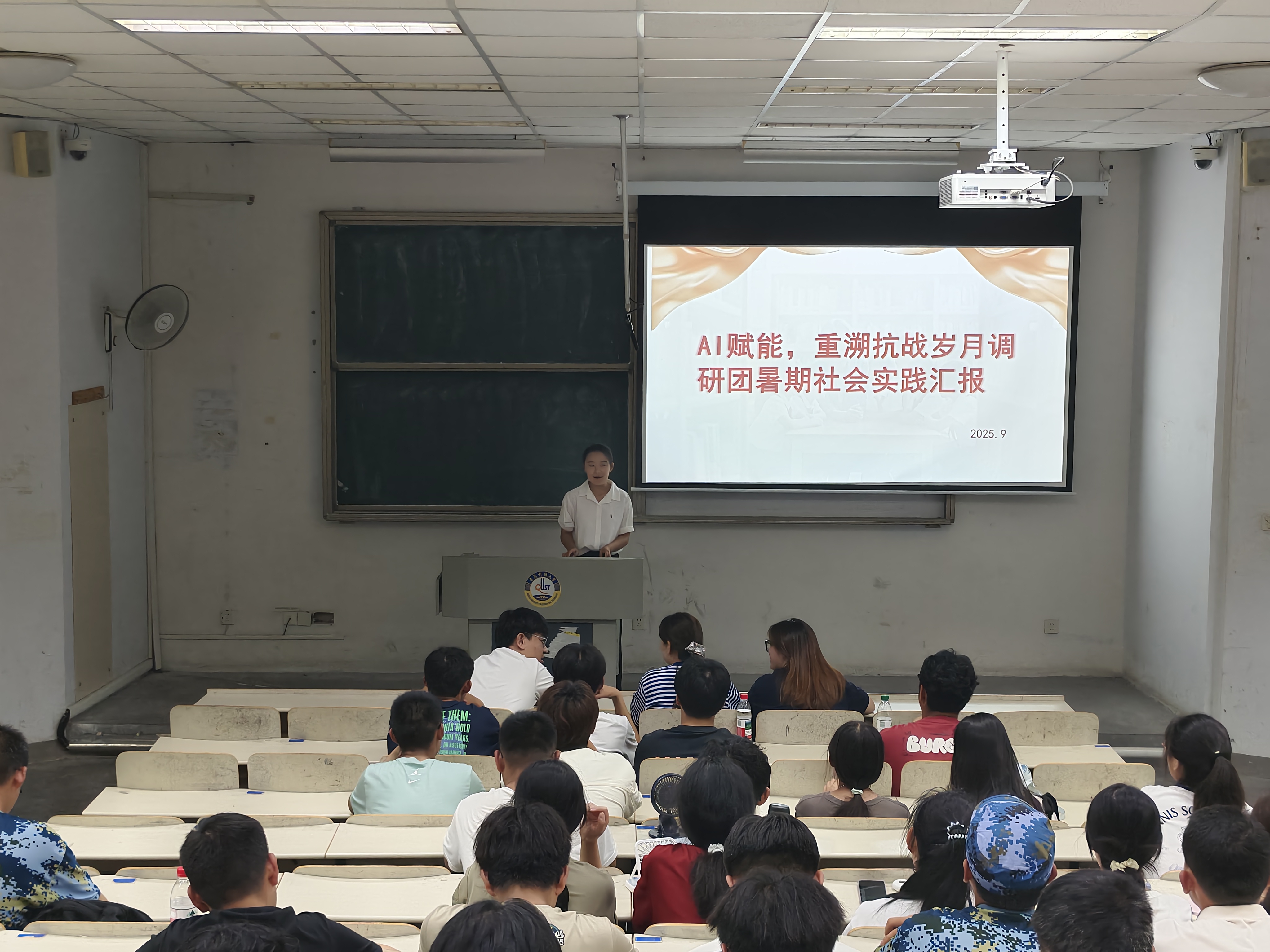 首先,各实践团队代表对实践成果进行汇报展示。2025年暑期,bat365中文官方网站共有22支队伍参与“三下乡”社会实践,积极开展各类实践活动。其中,“AI赋能,重溯抗战岁月”实践团赴青岛市平度市开展红色实践活动,依托学科特色与专业优势,为老照片开展“焕彩”修复工作,感悟伟大抗战精神的时代价值;“春雨有爱,点亮未来”实践团赴春之雨如康家园开展弱势群体关爱帮扶活动,通过共同完成扭扭棒、钻石画等手工作品,弘扬自强与助残精神,增强青年社会责任感;“绿益分类·智绘家园”实践团赴青岛市崂山区开展绿色环保科普活动,提升居民的垃圾分类意识与环境保护意识。