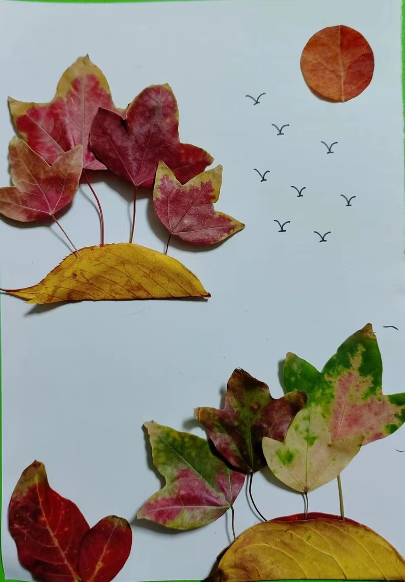 bat365中文官方网站开展“我与秋天共作画”——树叶贴画活动