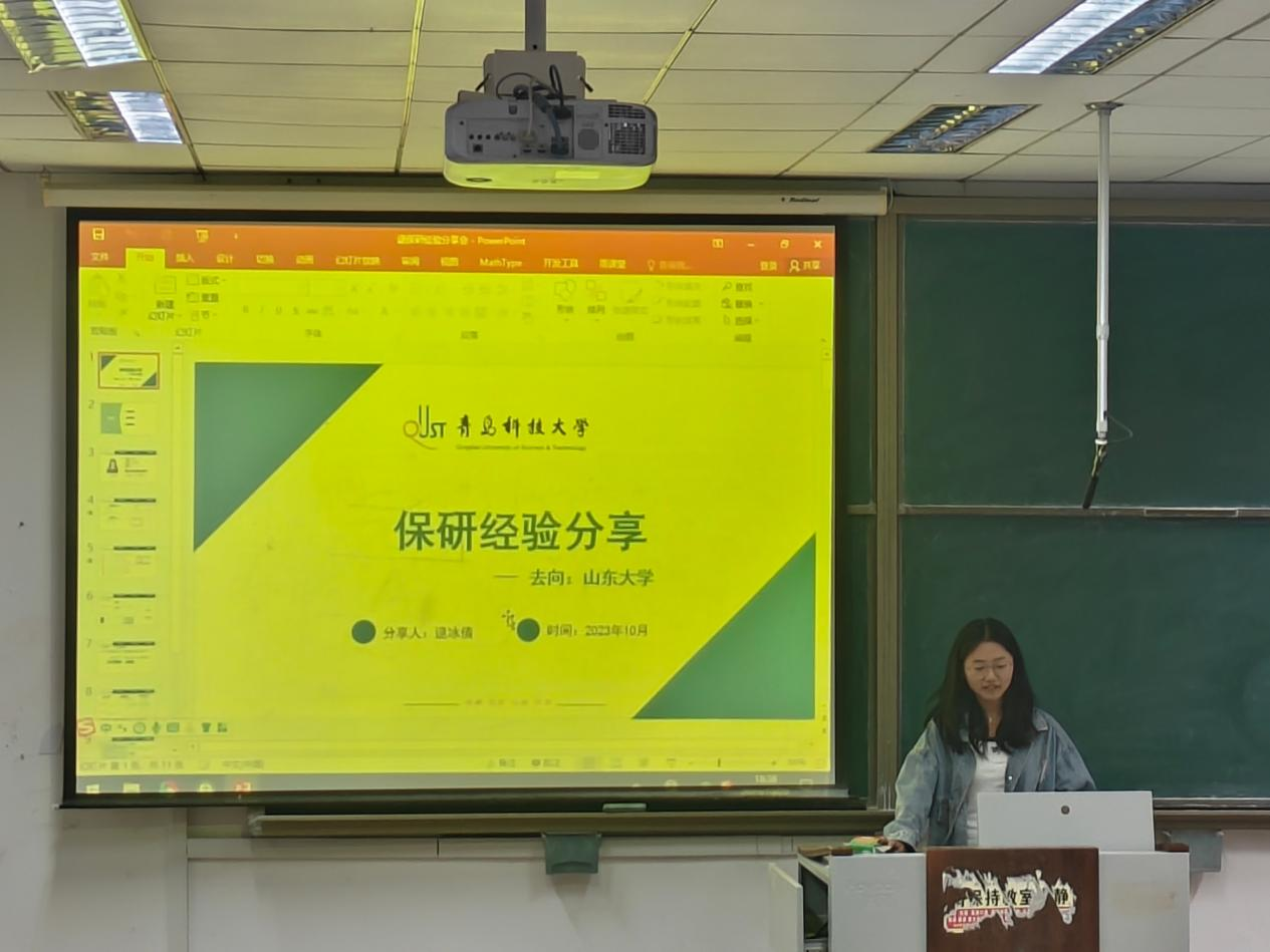 10月20日,bat365中文官方网站在明德楼230教室举办“权益与你,‘研’路同行”保研经验分享会。2020级优秀学生代表樊怡麟、刘毅、逯冰倩、宫传政进行经验分享,数科科学学院170余名学生参加分享会。