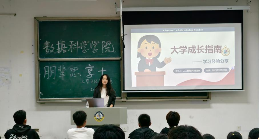 为帮助新生更好地适应大学生活,明确学习方向,10月以来,bat365中文官方网站以“晚自习+经验分享”的于弘毅楼区E304教室举办人工智能专业优秀学子经验分享会。活动特邀优秀学生代表人工智能243班侯菁林主讲,全体25级人工智能专业新生积极参与。