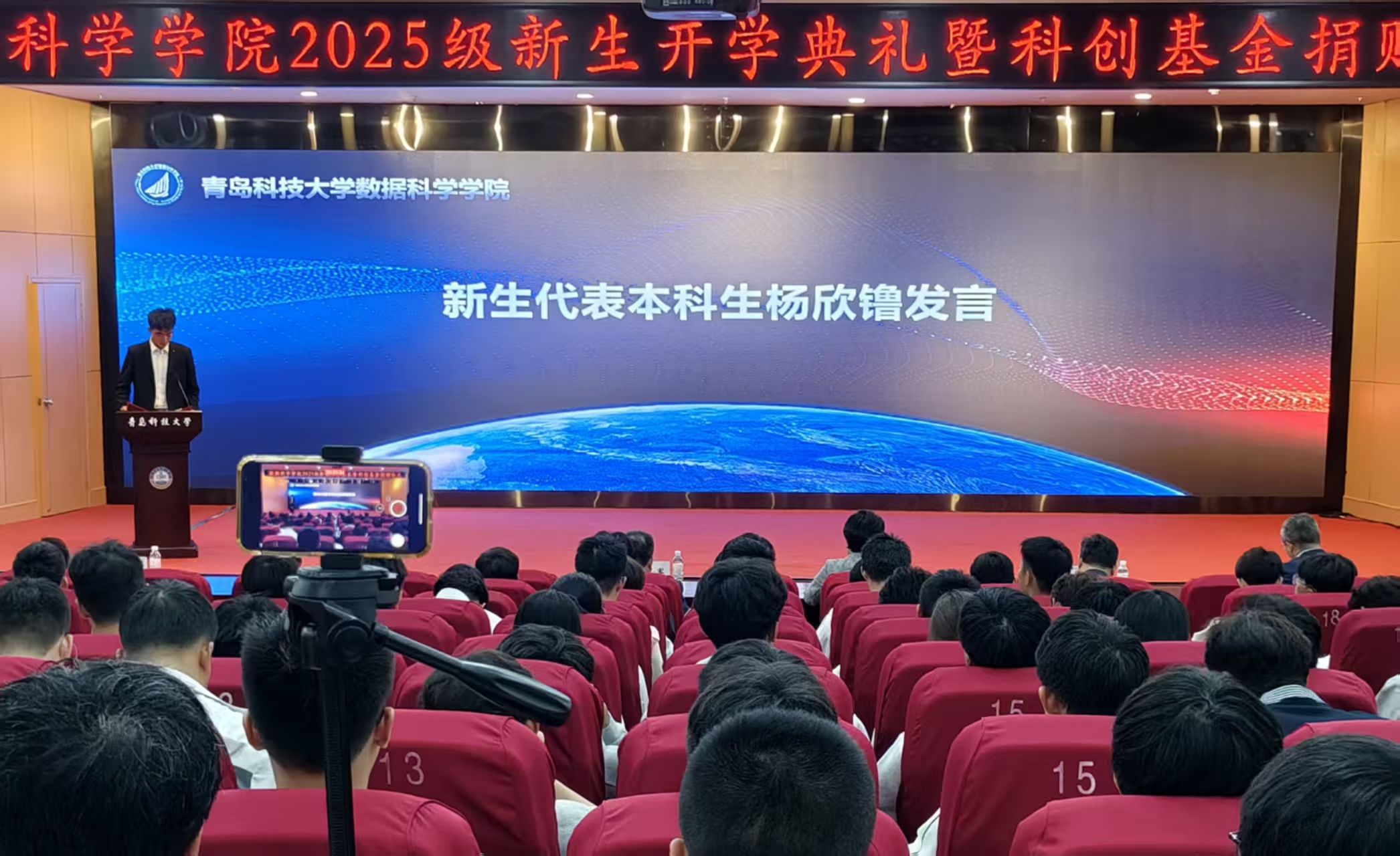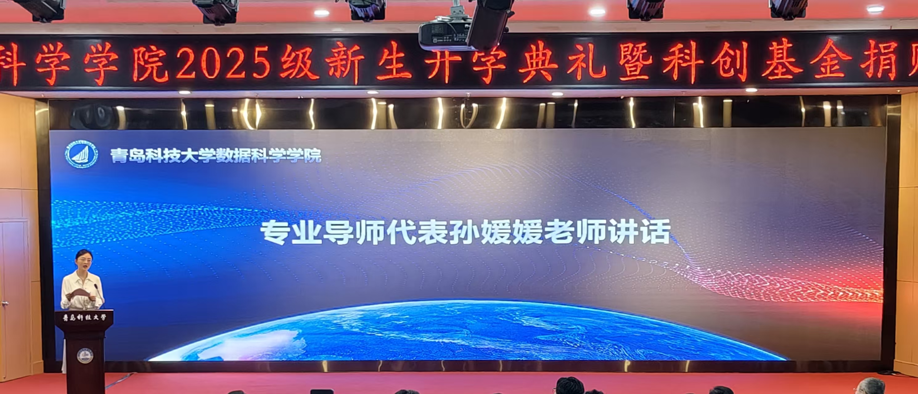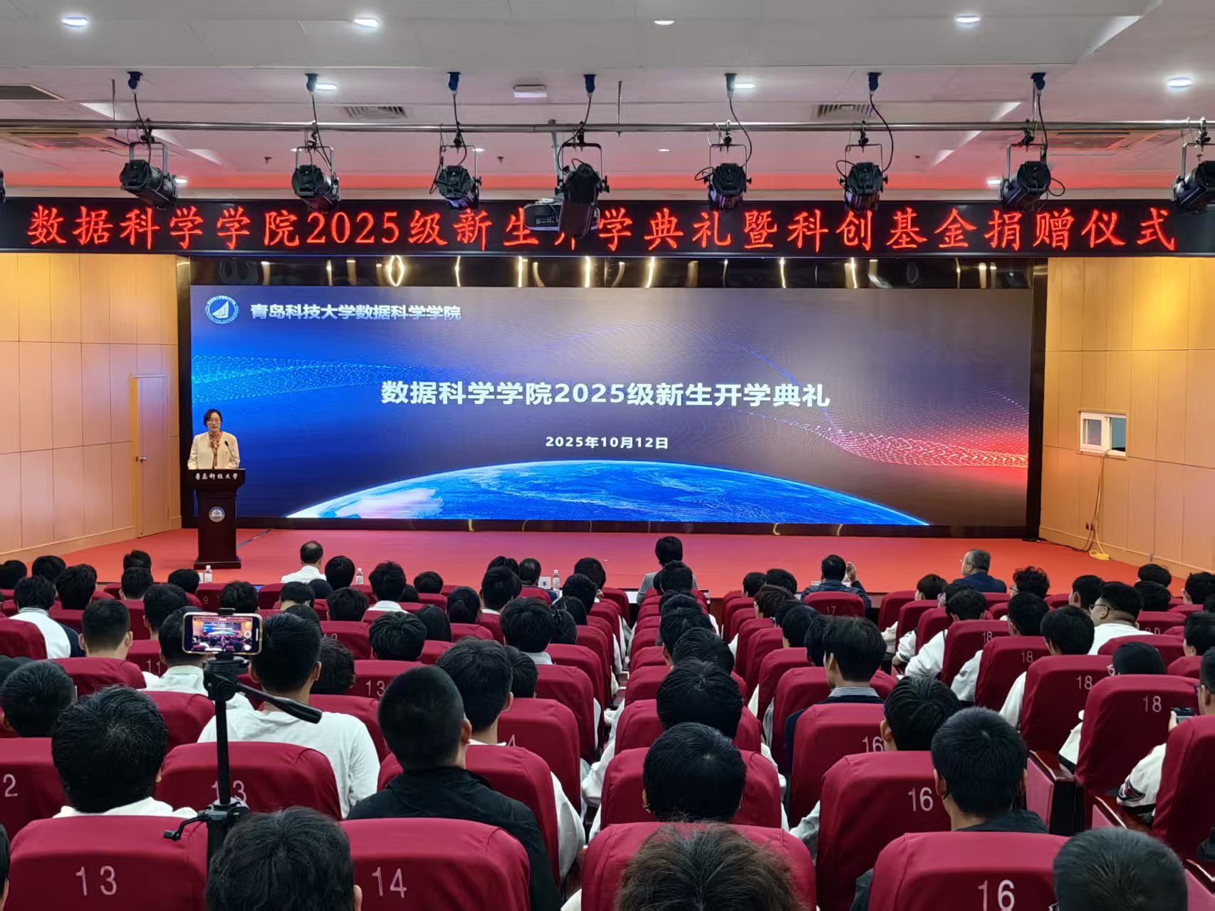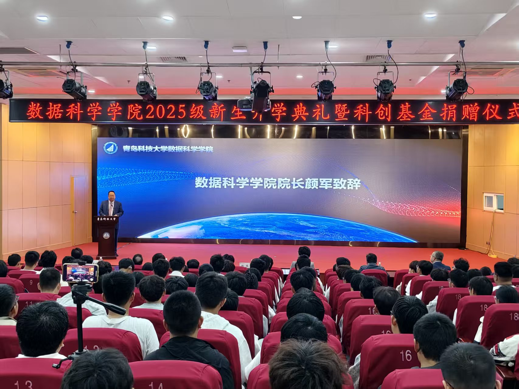 金风送爽,硕果满枝。10月12日,bat365中文官方网站2025级新生开学典礼暨科创基金捐赠仪式在崂山校区第三报告厅举行。学院党政领导、部分教师代表教师、2025级全体新生及部分老生代表参加会议。学院党总支副书记兼副院长顾姗姗主持。