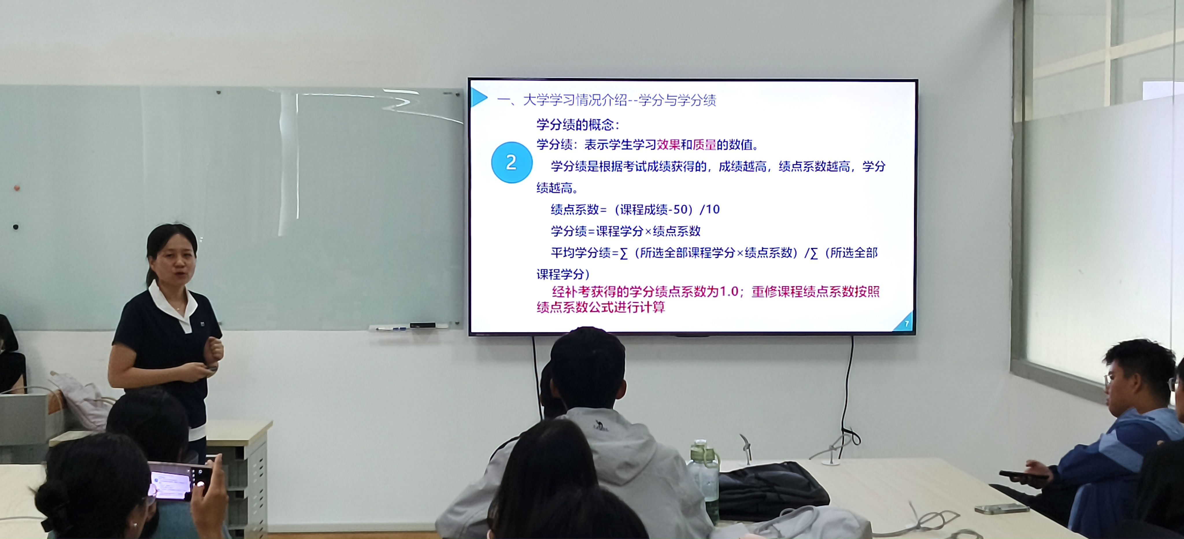 为让新生更好地了解学校教学管理制度,教学秘书张倩老师围绕选课、考试、重修、转专业、学分转换、学分绩点、学业预警、违纪处理等关键环节的规定进行了解读,帮助新生快速适应大学生活节奏和规则。
