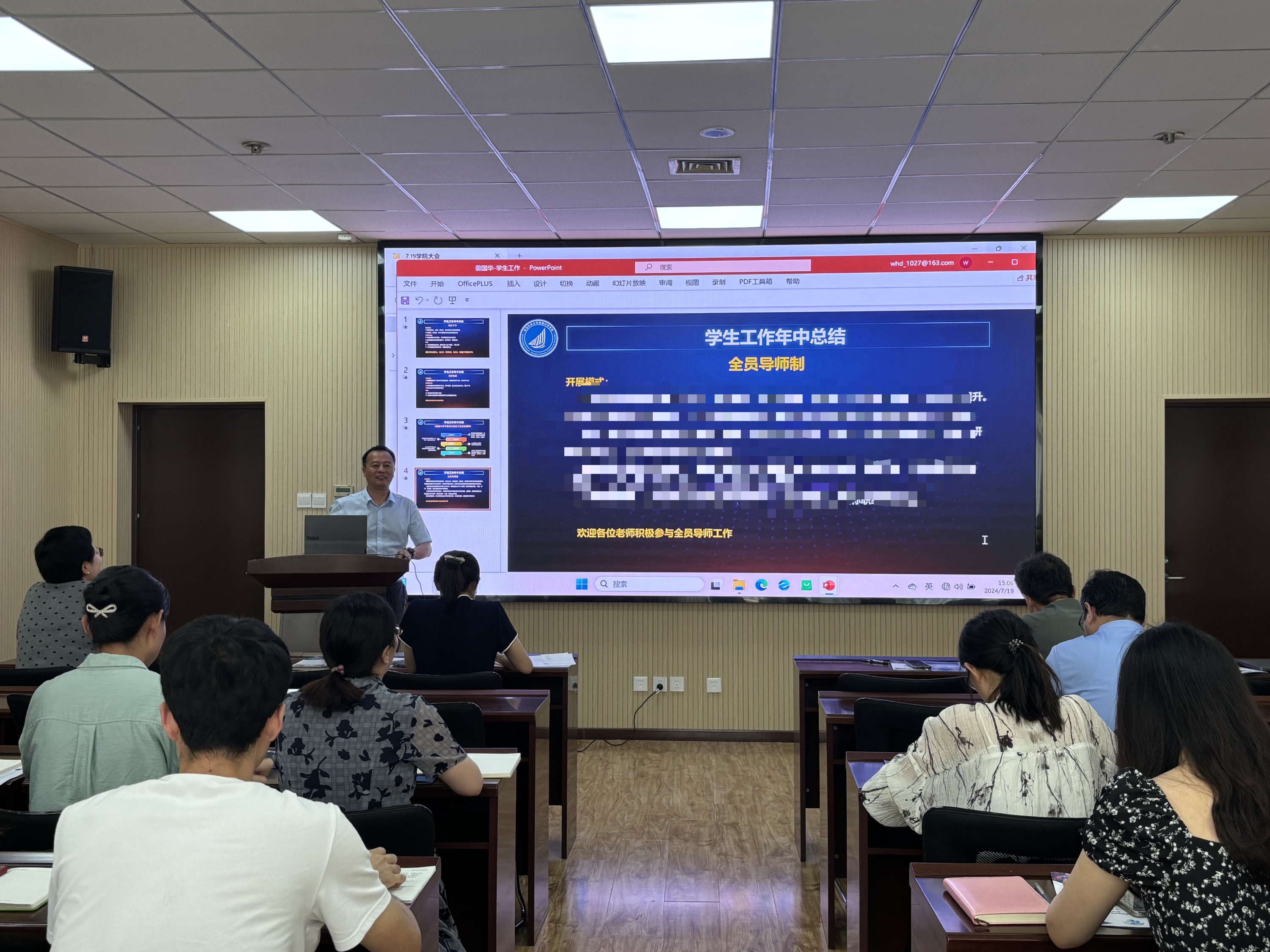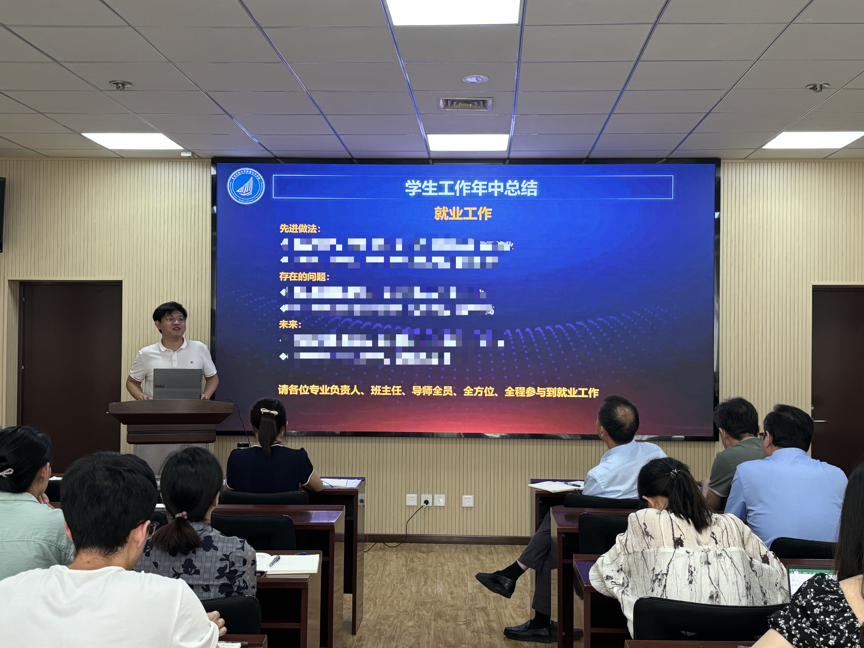 团委副书记、学工办副主任姜国华对学院上半年的学生工作作了总结,重点通报了学院目前的毕业生就业情况,并结合2024届毕业就业年报数据号召老师们注重人才培养方案和社会需求的对接。同时对学院目前的师生科技创新参与度和种子数、以及即将颁布的《bat365中文官方网站素养提升工程实施细则》进行了汇报。