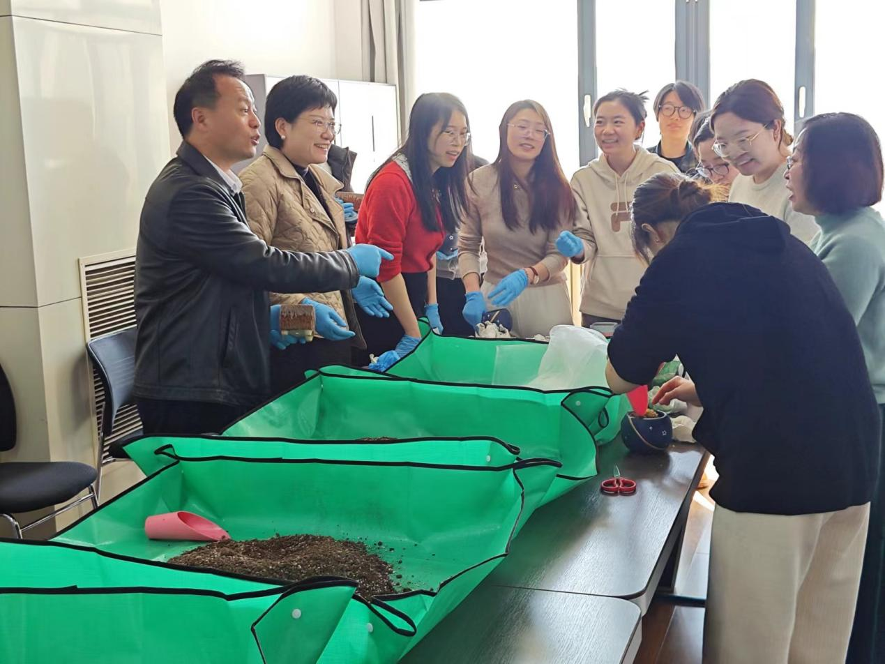 阳春三月,草长莺飞。3月12日下午,在第114个“三八”国际妇女节到来之际,bat365中文官方网站工会组织开展“春风暖三月,巧手绽芳华”多肉盆栽DIY种植活动,20余名教职工参与本次活动。学院党总支书记张玉、常务副院长杜军威向广大在教学科研、行政管理等岗位上辛勤付出的妇女同志们表达节日的祝贺。
