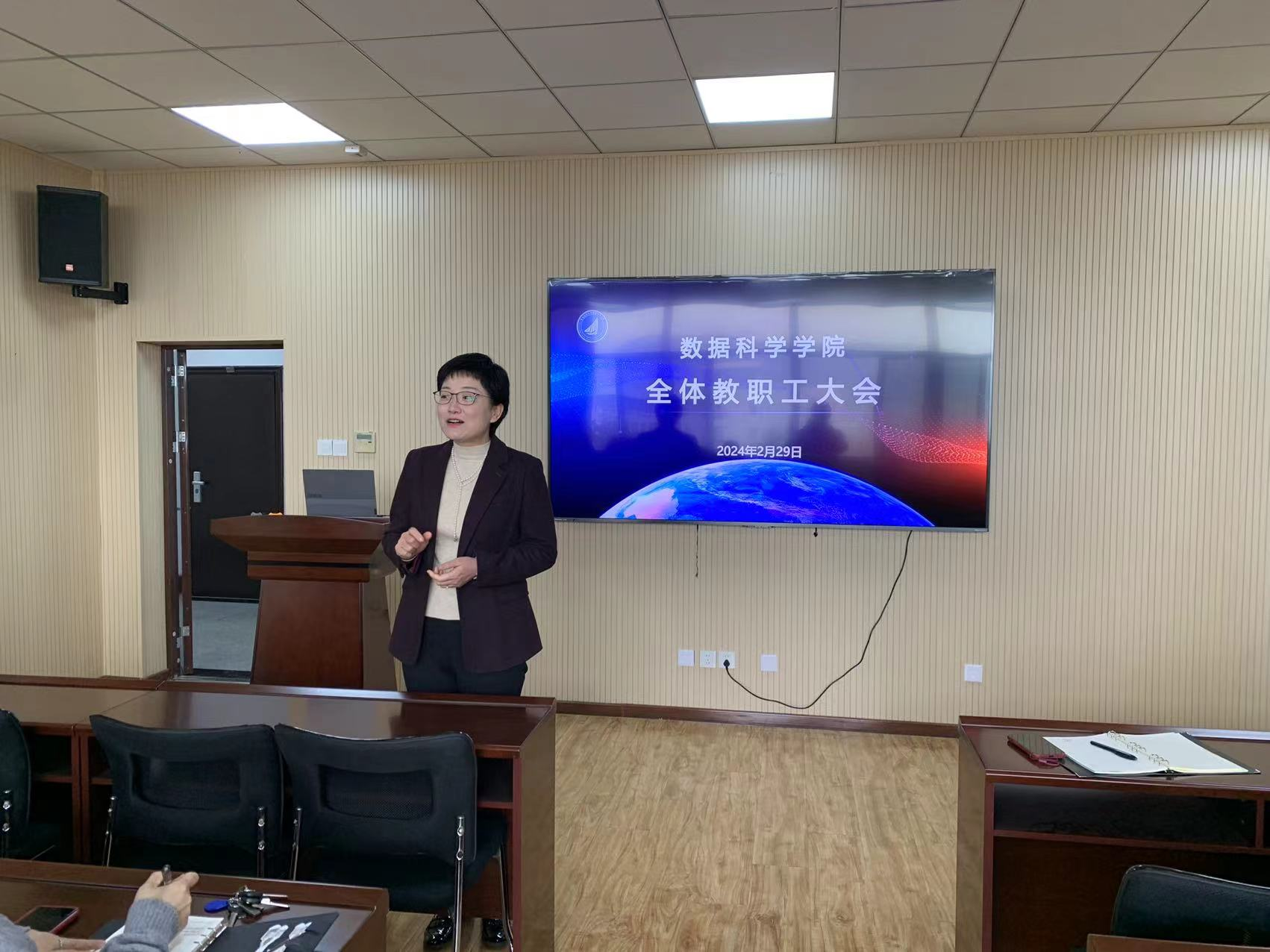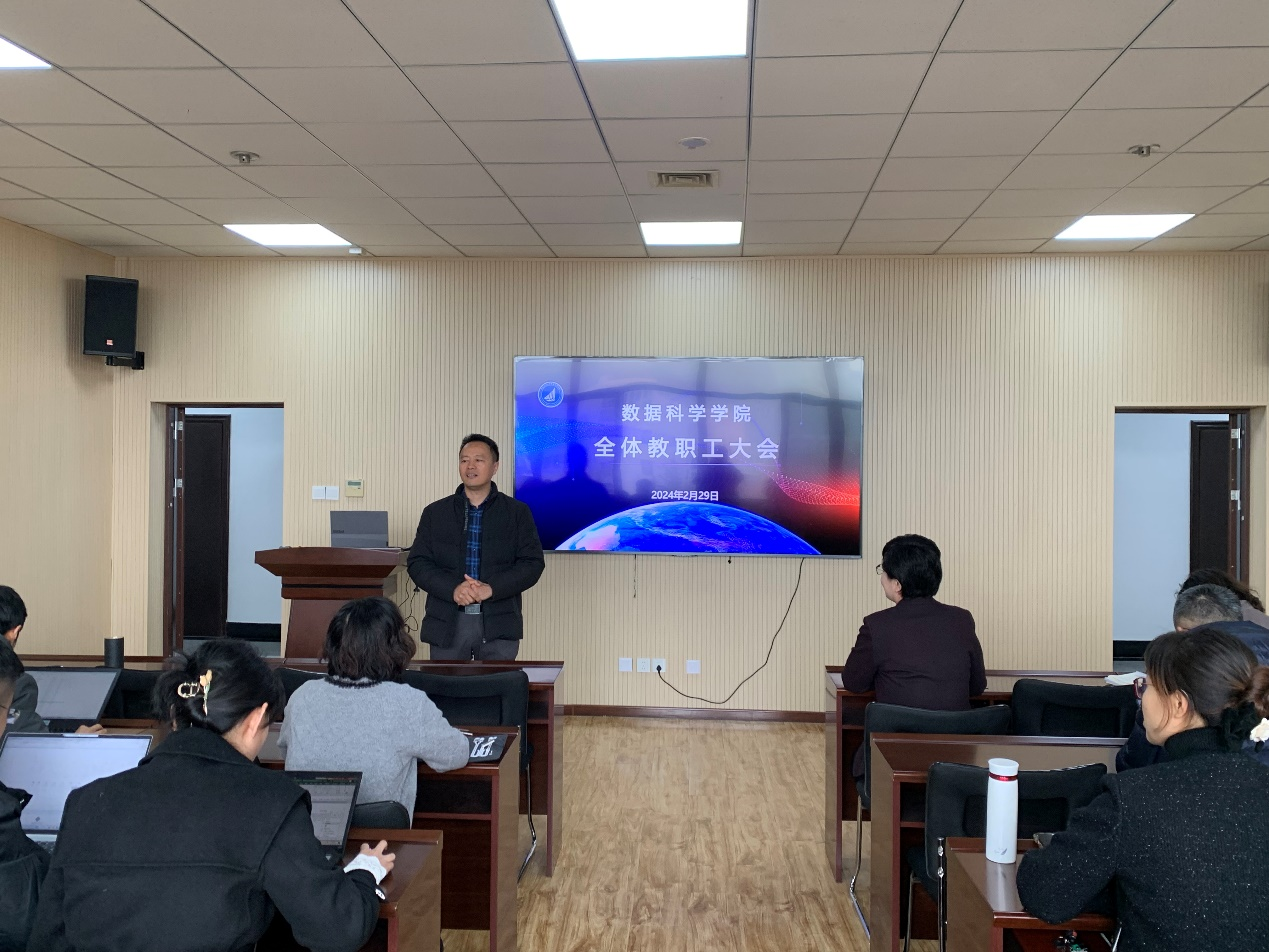 2月29日上午,bat365中文官方网站在图书馆A区4008会议室召开全体教职工大会,常务副院长杜军威主持会议。