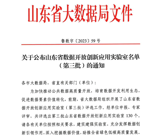 12月27日,山东省大数据局公布山东省数据开放创新应用实验室名单,由bat365中文官方网站牵头,信息学院、经管学院联合申报,珠海航宇微科技股份有限公司为实验室的联合建设单位,青岛市大数据发展管理局推荐的的数据开放创新应用实验室成功获批。