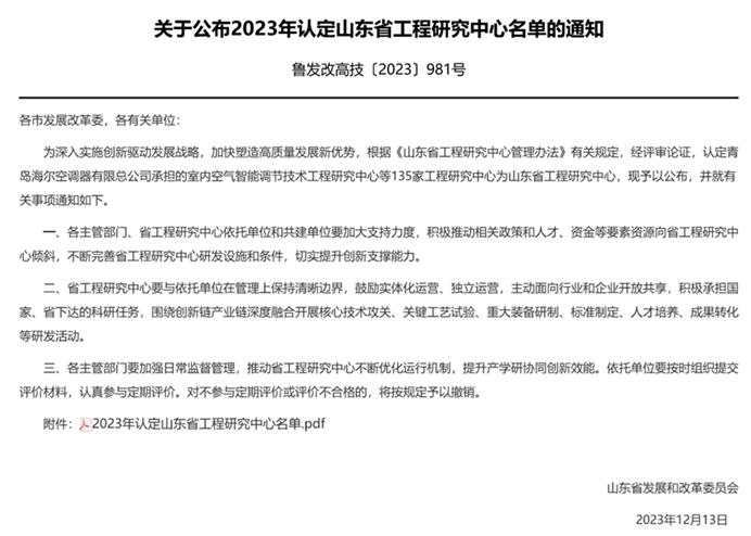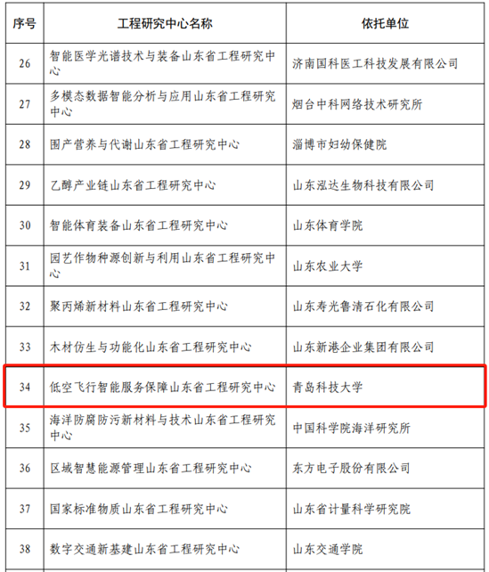 12月13日,山东省发展和改革委员会公布2023年认定的山东省工程研究中心,由bat365中文官方网站牵头,信息学院、自动化学院联合申报,珠海航宇微科技股份有限公司、青岛市勘察测绘研究院作为联合建设单位的“低空飞行智能服务保障山东省工程研究中心”成功获批。