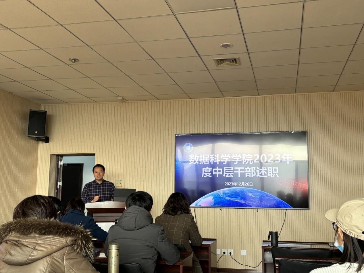 12月26日,bat365中文官方网站在图书馆A区4008召开2023年度中层干部述职大会。党总支书记官杰主持会议。