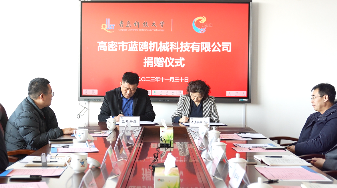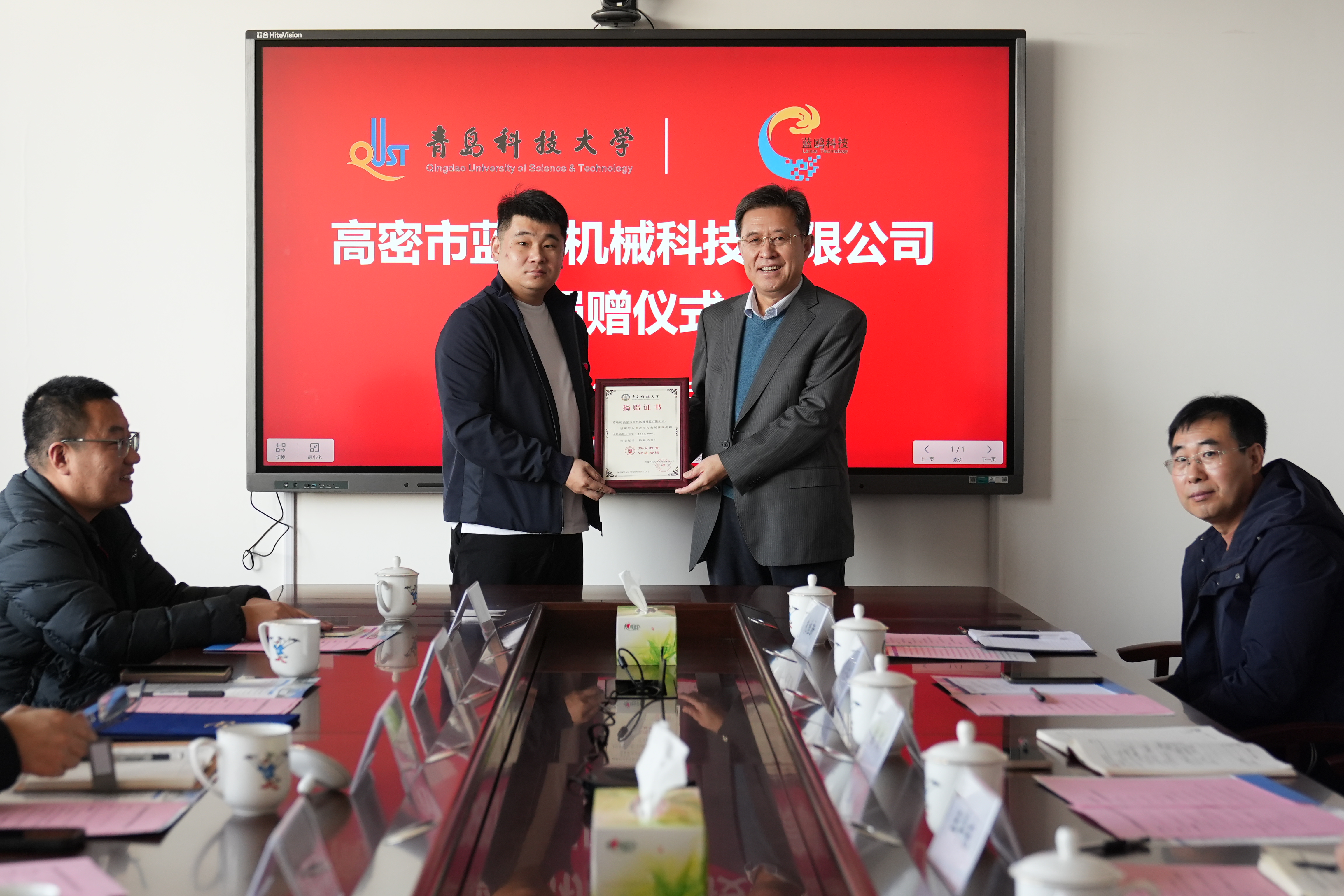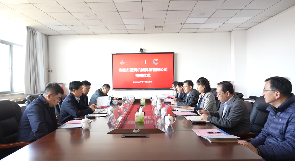11月30日上午,高密市蓝鸥机械科技有限公司捐赠仪式在图书馆A区5004会议室举行。高密市蓝鸥机械科技有限公司董事长于洪亮、总经理李彪、特别助理于海洋、技术总监于泳水,学校bat365中文官方网站党总支书记官杰、院长助理戴学仁出席仪式。