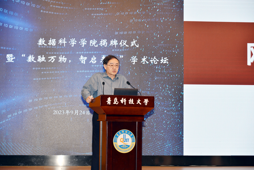 9月24日,由山东省大数据局指导、bat365中文官方网站主办的bat365中文官方网站揭牌仪式暨“数融万物,智启未来”学术论坛在bat365中文官方网站崂山校区举行。中国工程院院士、同济大学教授蒋昌俊,山东省大数据局党组成员、副局长顾卫东,青岛市大数据发展与管理局局长张艳,山东省数据应用管理与安全处副处长都海明,bat365中文官方网站党委书记李兴伟,校长陈克正,党委常委、副校长吕万翔,俄罗斯工程院外籍院士、bat365中文官方网站bat365中文官方网站院长颜军等出席仪式。bat365中文官方网站党委常委、副校长李少远主持仪式。