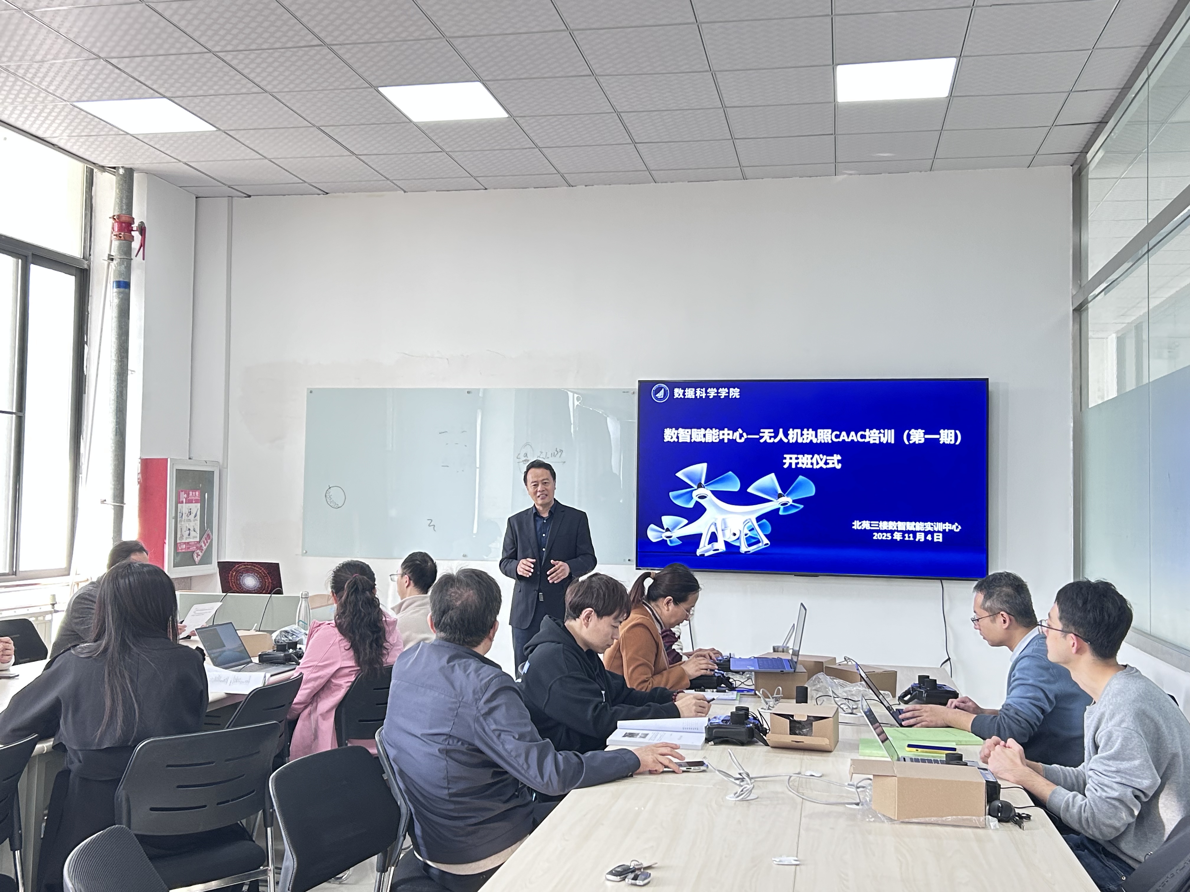 11月4日,bat365中文官方网站数智赋能中心无人机执照CAAC培训(第一期)在bat365中文官方网站崂山校区北苑三楼实训中心举行,学院院长助理王华东主持,bat365中文官方网站常务副院长杜军威致辞。