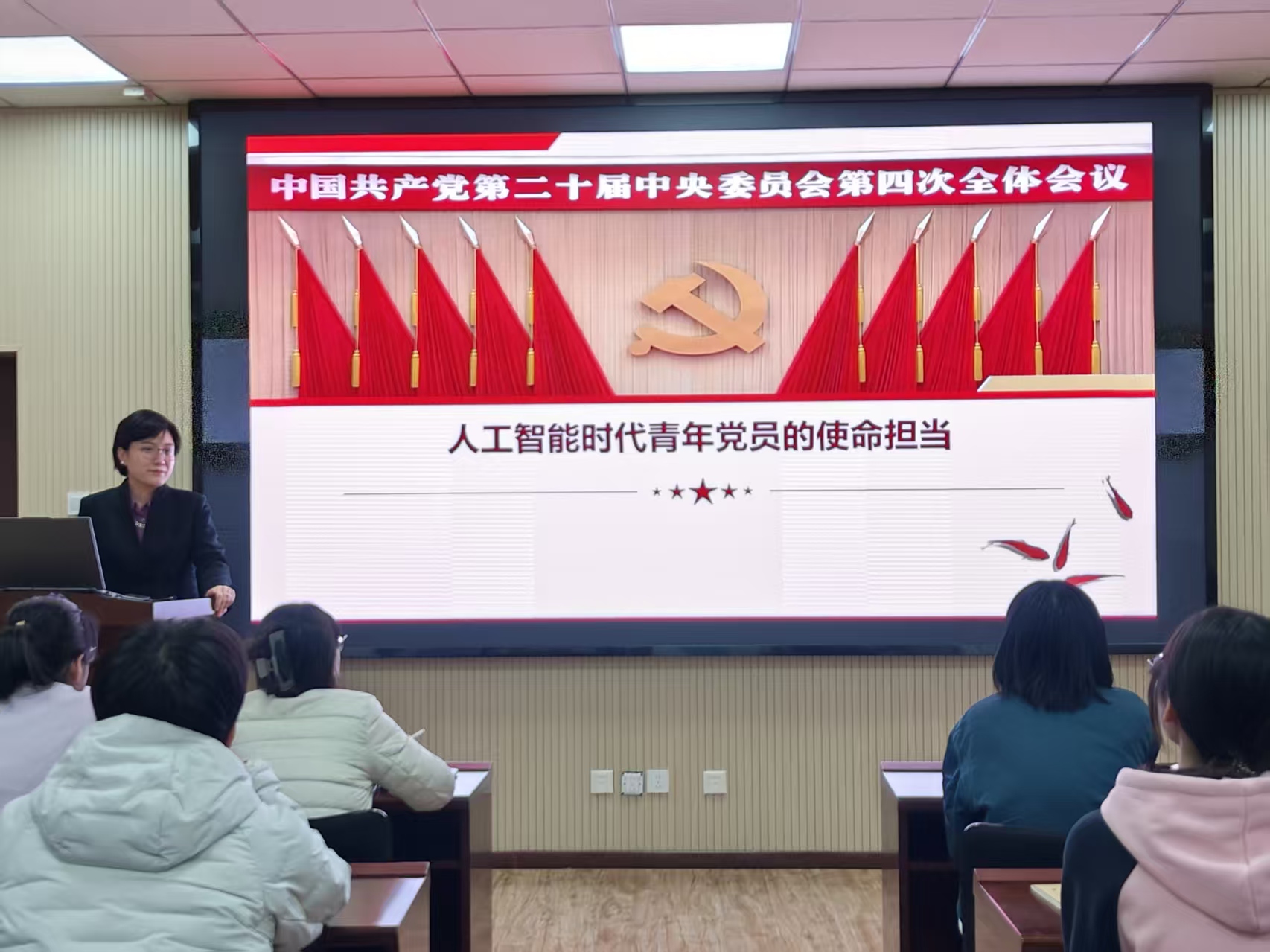 12月2日,bat365中文官方网站党委书记张玉为学院学生讲授《人工智能时代青年党员的使命担当》思政课,深入解读党的二十届四中全会精神,引导同学们在新时代中明确责任,发挥积极作用。