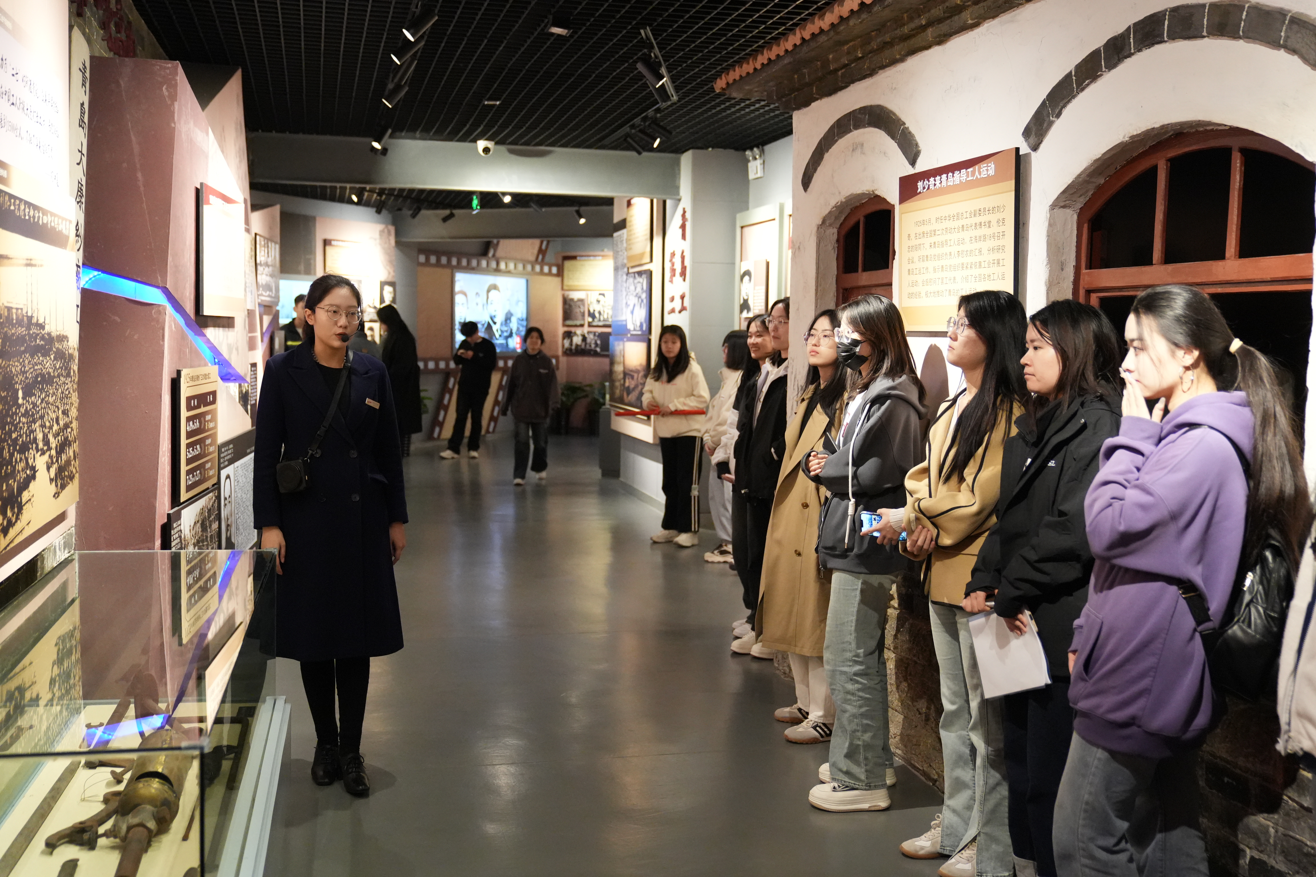 在讲解员的引领下,党员们走进了专题展厅,回顾了中国共产党不屈不挠、英勇奋斗的光辉历程,深切感受到了中国共产党百年奋斗所取得的伟大成就。通过丰富的展品、视频以及生动的讲解,党员们身临其境地感受到自1923年青岛第一个党组织成立以来,青岛人民所经历的艰苦卓绝的奋斗历程和所取得的辉煌成就。这些珍贵的历史记忆,时刻提醒着学生党员们要珍惜来之不易的美好生活。