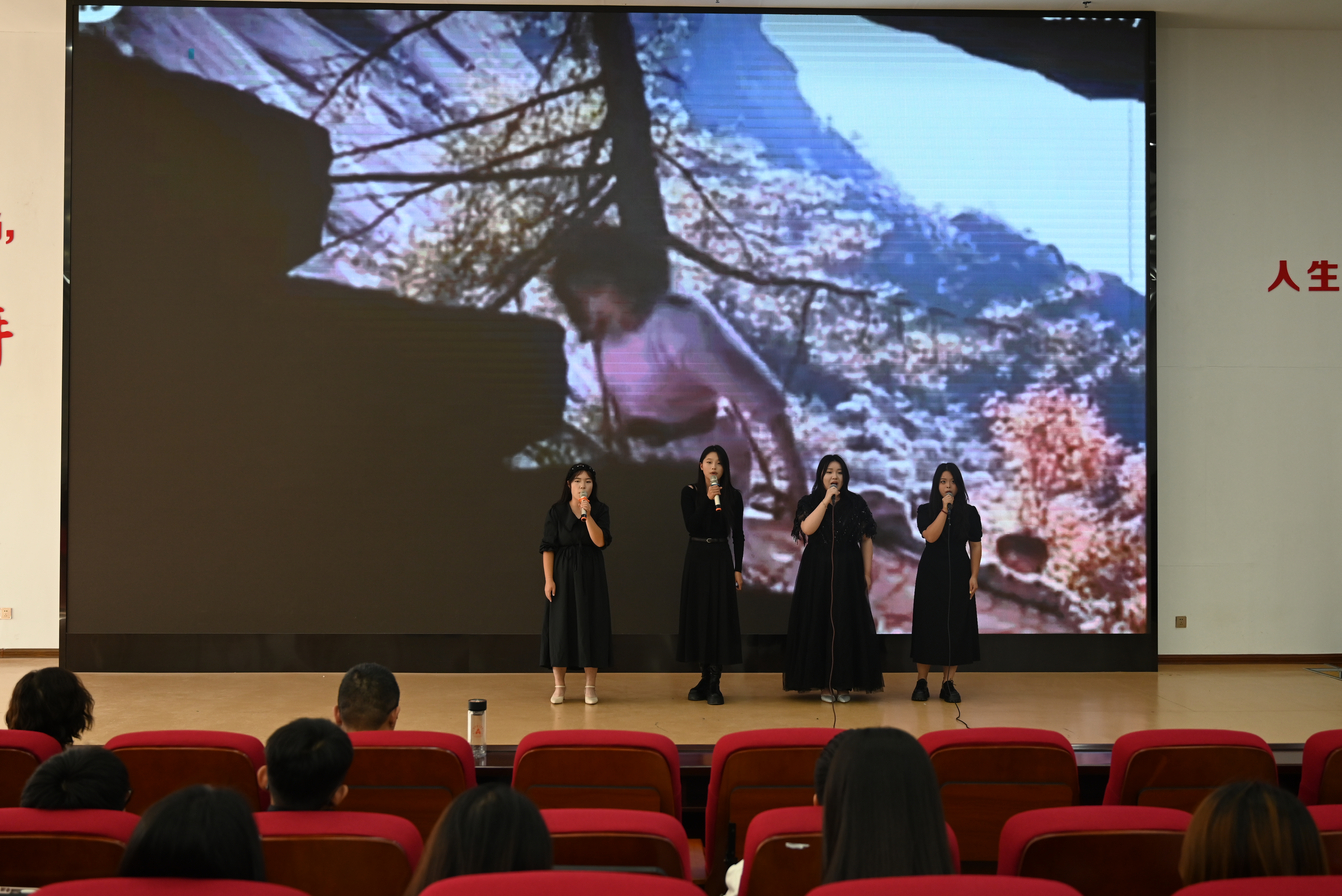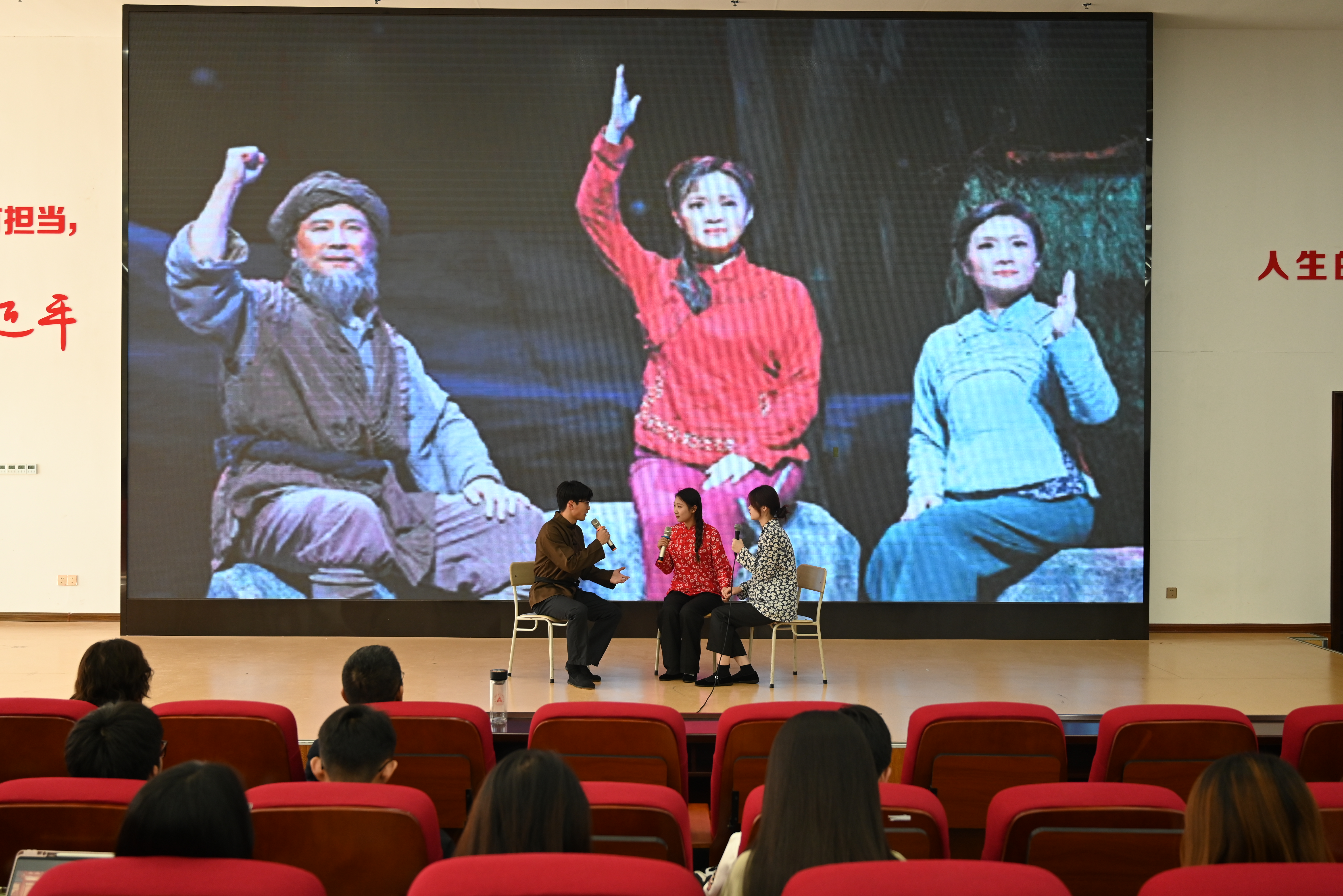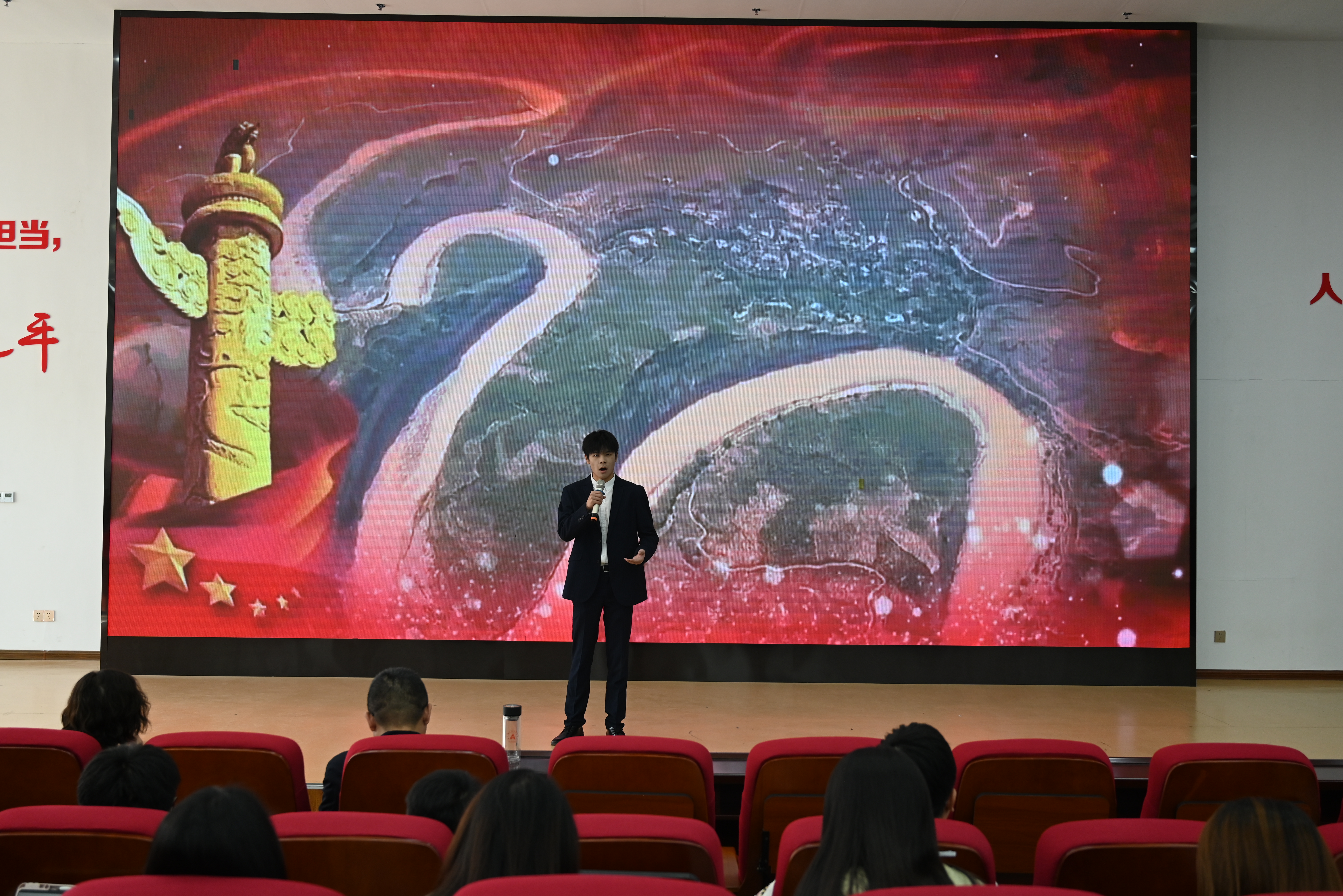 本次党课由艺术学院表演团队带来了《长城谣》《黄河颂》《绒花》等10首红色歌曲和新疆顶碗舞、哈萨克舞等少数民族舞蹈,以沉浸式红色音乐赏析的形式,带领学生重温中国共产党百余年来波澜壮阔的光辉历程。演出人员倾情演绎,用悠扬婉转的旋律和优美灵动的舞姿传递出了革命岁月的筚路蓝缕,传递出了对党的热爱与感激,传递出了坚守真理、担当使命的崇高信仰。