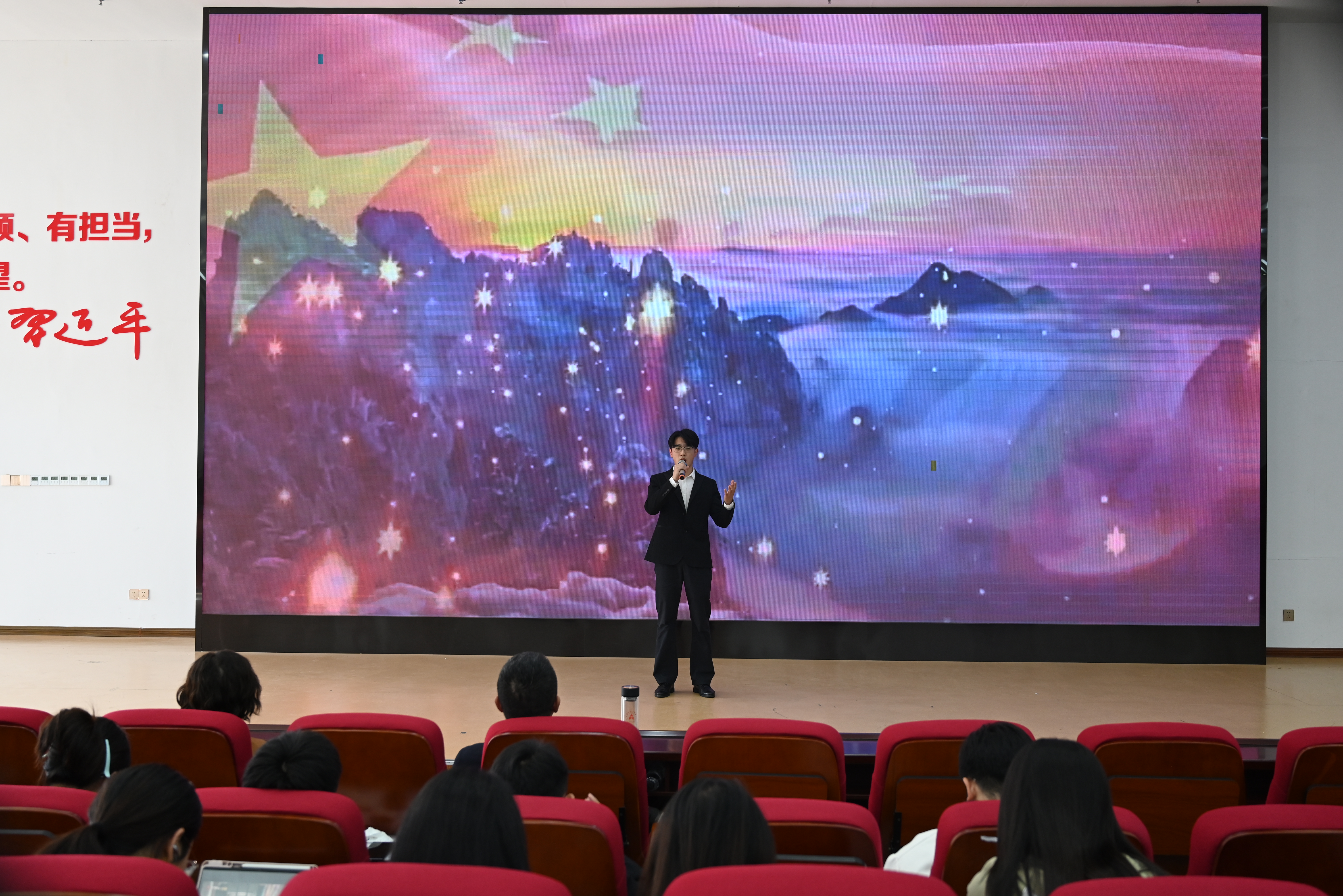 为进一步增强学生的党性修养,提升思想政治教育水平,bat365中文官方网站于近期成功开展了“素养导师思享+”第四期暨青马团校培训课程。本次活动结合党史教育与艺术表演,以《奏响新时代红色强音——音乐党课》为主题,通过多样化的学习形式,引导学生更好地理解中国共产党百年来的伟大历程,坚定理想信念,增强责任担当感。此次活动不仅让同学们在欣赏艺术的过程中感悟革命精神,更激发了他们传承红色基因、勇担时代责任的决心。