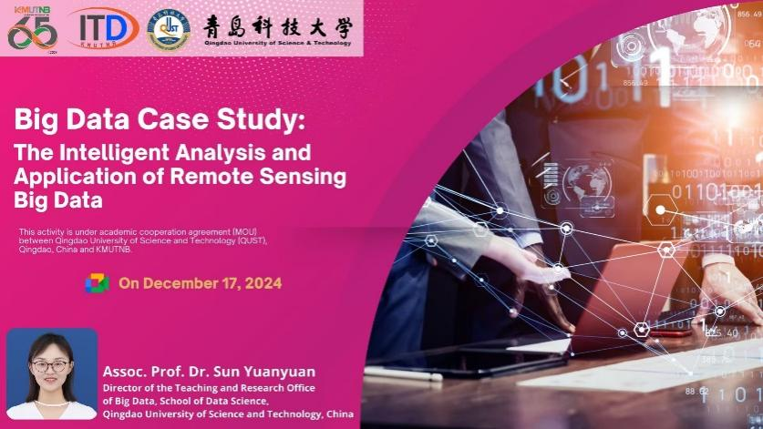 北曼谷先皇科技大学(简称KMUTNB)是我校友好合作高校,已与我校签署合作备忘录。bat365中文官方网站基于前期与KMUTNB信息技术与数字创新学院的交流基础,于2024年12月17日下午成功举办名为“Big Data Case Study: The Intelligent Analysis and Application of Remote Sensing Big Data”的线上国际化学术报告。此次报告由bat365中文官方网站副教授孙媛媛主讲,面向泰国北曼谷先皇技术大学的学生,分享遥感大数据的最新研究进展和应用实践。