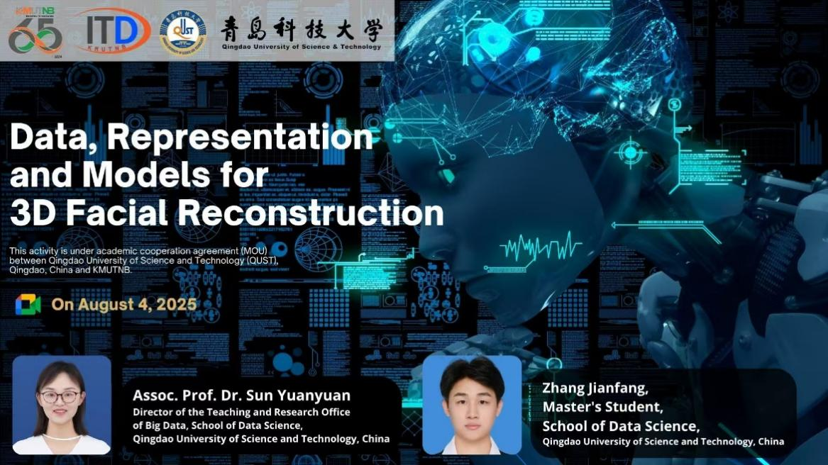8 月 4 日上午,主题为 “Data, Representation and Models for 3D Facial Reconstruction” 的线上国际学术报告成功举办。本次报告面向泰国北曼谷先皇技术大学学生,由bat365中文官方网站教师孙媛媛副教授及其研究生张舰方主讲,分享了 3D 人脸重建领域的最新研究进展与应用实践。