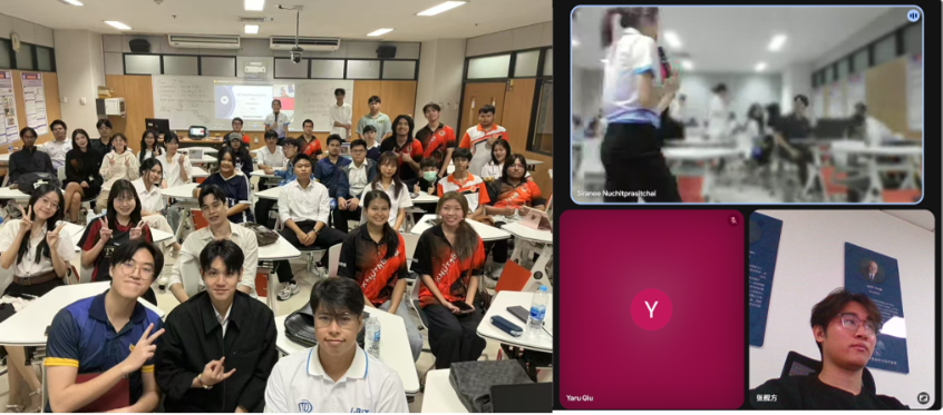 本次交流深入探讨了 3D 人脸重建中数据、表征和模型研究所面临的挑战与机遇。孙媛媛就3D建模在多个领域广泛应用,如医学、虚拟现实、数字人物和人脸识别等做了简单介绍,张舰方分享了自己利用 3DGS攻克 3D 人脸建模的研究成果,为泰国学生带来了极具价值的学术资源与全新的研究视角。在报告的研讨环节,北曼谷先皇技术大学的学生们表现出了浓厚兴趣,积极提问,双方师生进行了热烈的互动交流,活动在友好氛围中圆满结束。